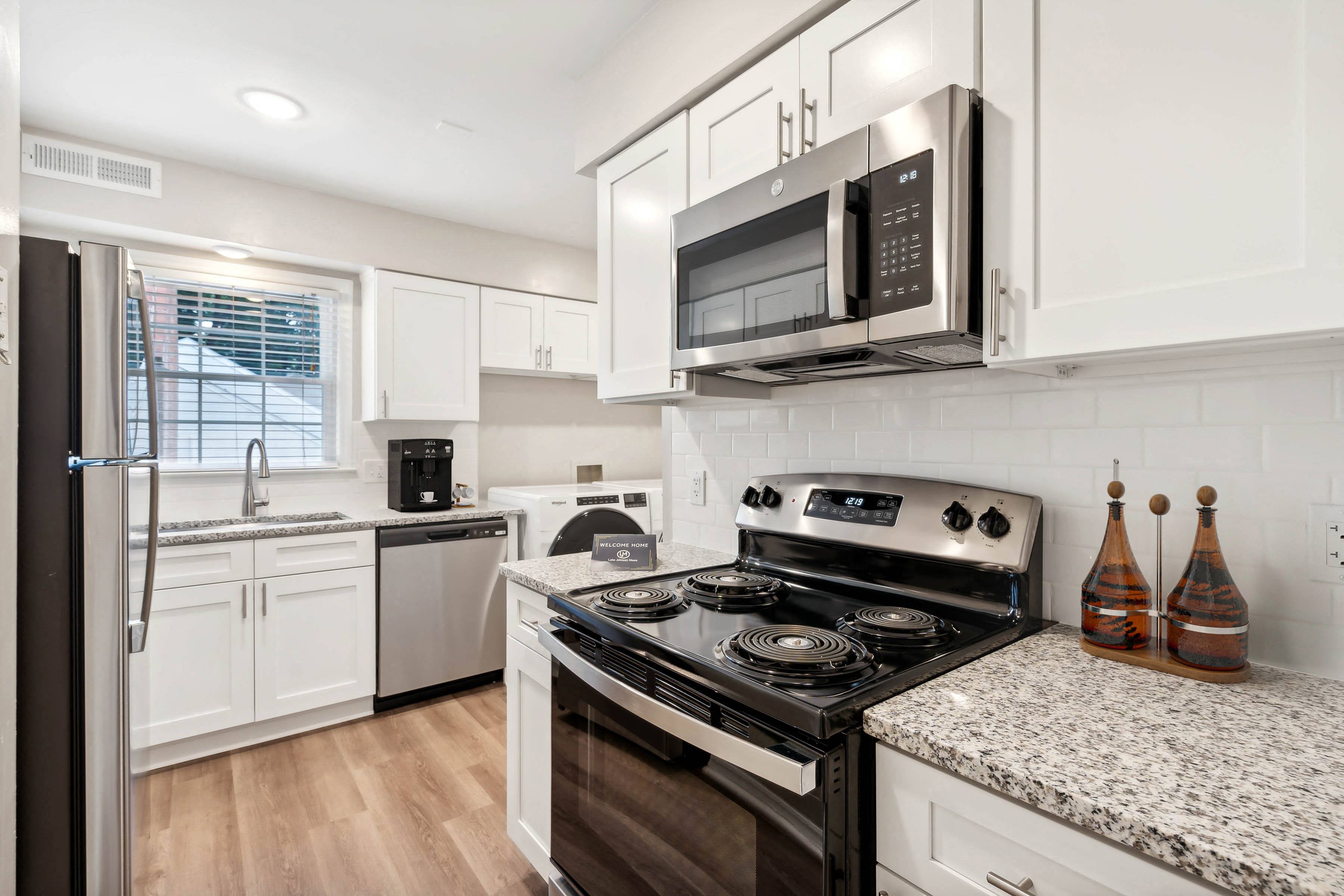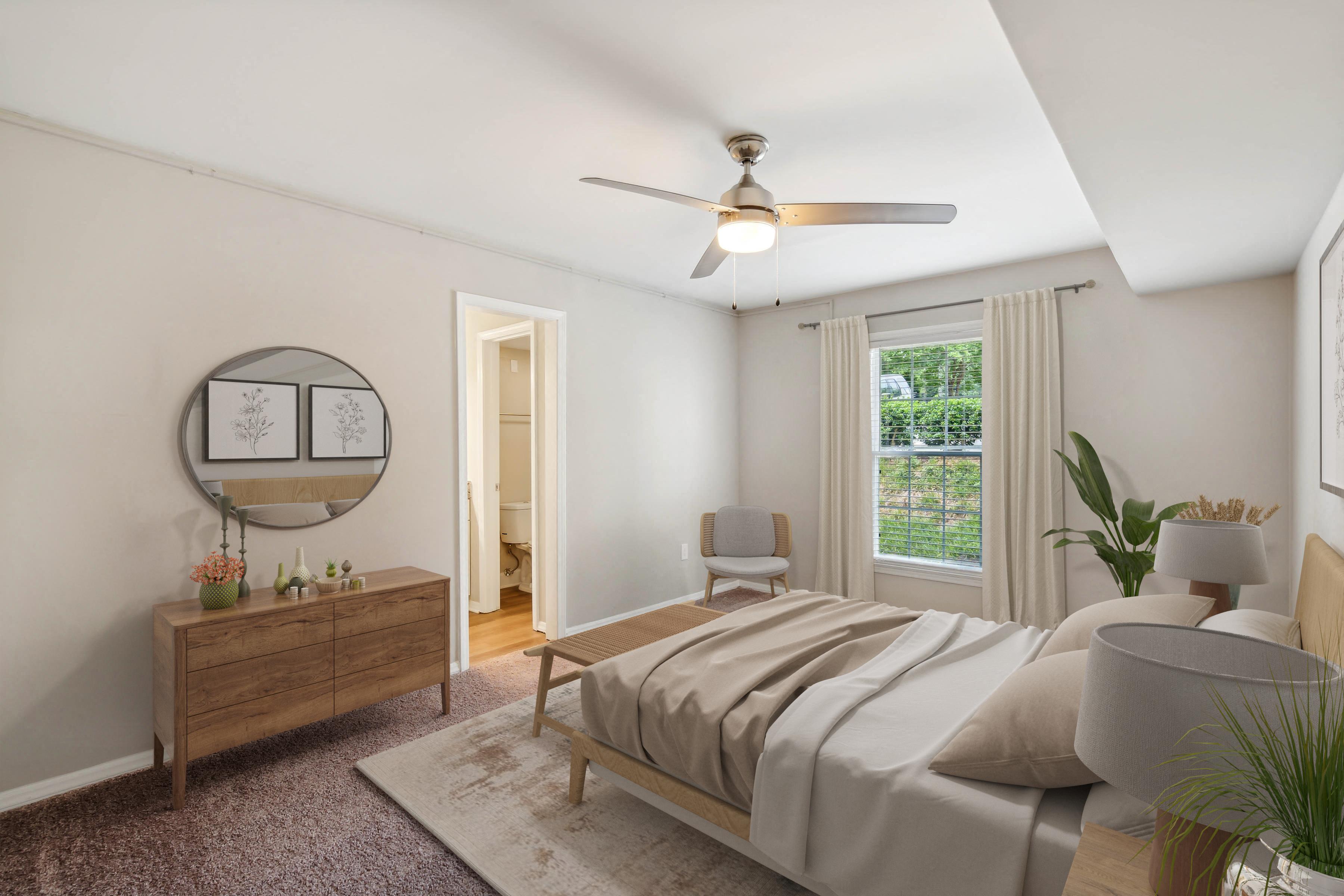 *Security deposit may range from $350 to one month’s rent. Prices shown are valid for today only. Floor plan layout, dimensions, square footage, and finishes are for reference only and may vary from what is shown. Welcoming You to Our Raleigh, NC Apartments Lake Johnson Mews Apartments offers beautifully designed one, two, and three-bedroom apartments in Raleigh, NC, meant to fit every lifestyle. No matter the size of your household or the amenities you’re looking for, we’re confident you’ll find the home of your dreams here. And if you’re searching for something bigger, we have two-bedroom townhomes available! The one-bedroom apartments cover 748 square feet of space and feature one bathroom and a galley kitchen. The two-bedroom apartments span over 1,070 square feet, while the townhomes reach 1,360 square feet. The 1,252-square-foot three-bedroom apartments provides ample room for you and your roommates. Every home includes a private outdoor terrace, a W/D set, oak-style cabinetry, speckled grey granite countertops, brushed nickel lighting, and energy-efficient dual-paned windows. Some units also have wood-burning fireplaces. The peace, serenity, and comfort you find at the nearby Lake Johnson can also be found on our lush, green grounds when you live in our Raleigh apartments. A stroll around our community feels like a walk in the park, especially when you have a sparkling swimming pool with poolside grills, picnic areas, and a tennis court. Your furry friends also get to have fun at the bark park featuring a canine agility course. There is quick access to nature & hiking trails, boat rentals, kayaking, and fishing. If you want something more dynamic, try a 15-minute car ride to Downtown Raleigh. Take a virtual tour of our generous floor plans or schedule a tour to see them in real life.