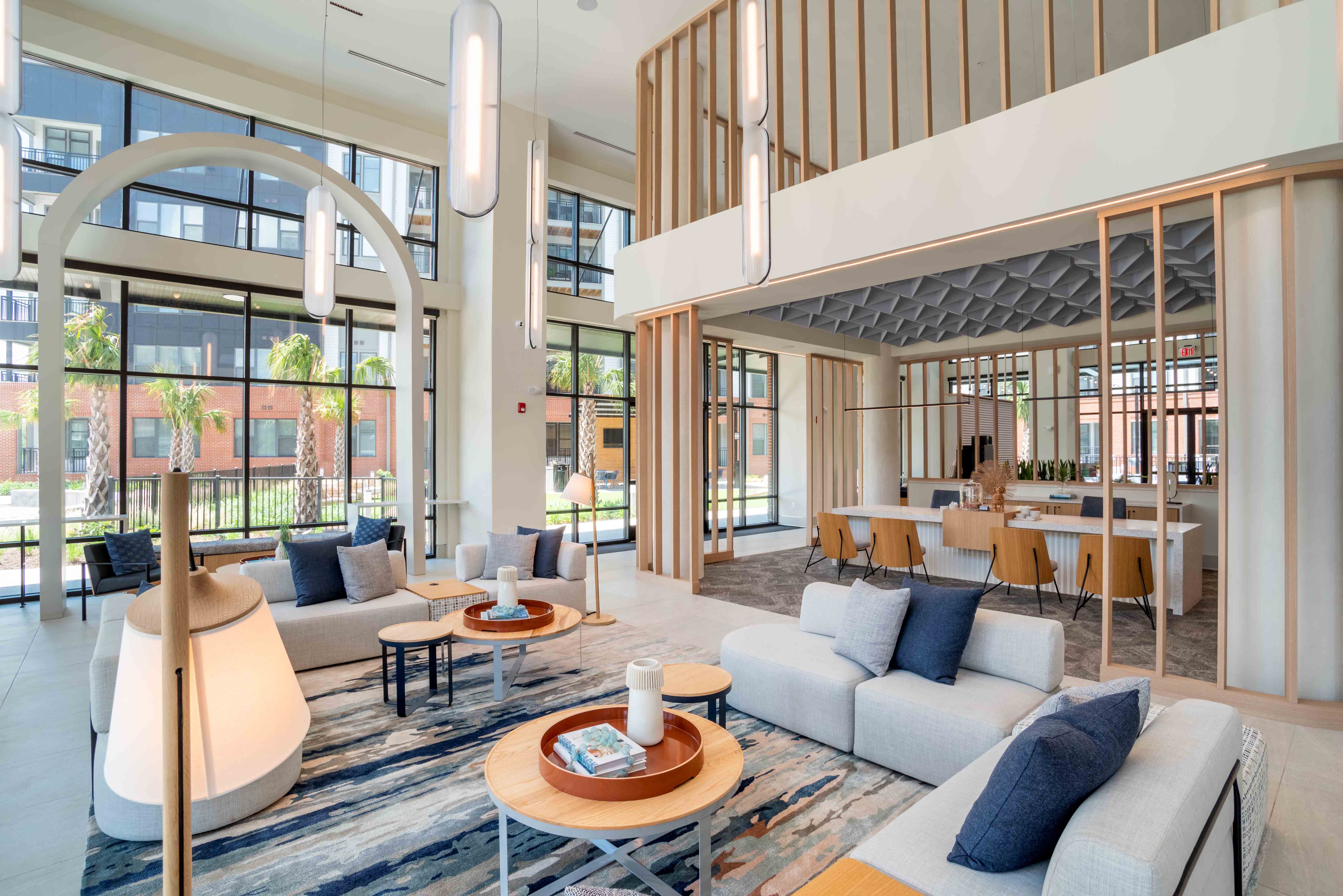 Your journey starts as soon as you decide on the layout that best complements your lifestyle. This could be one of our 531 to 555-square-foot studio apartments in Wilmington, NC, or the one-bedroom options that cover up to 1,246 square feet. If even more elbow room is what you’re after, you’ll be glad to know that our two-bedroom homes go as high as 1,352 square feet, while the three-bedroom ones reach 1,251 square feet of space to use as you wish. However, the common denominator in all of these apartments in New Hanover County, NC, are the show-stopping features. From designer kitchens with quartz countertops, tile backsplash, white Shaker cabinets, and stainless-steel GE appliances to spa-inspired bathrooms with frameless shower doors, every detail exudes modern elegance. You’ll also enjoy the convenience of smart thermostats and entry locks, ample in-unit storage including pantries as well as linen and walk-in closets, along with full-size washer/dryer sets. Some units take it up a notch with oversized river-view windows and balconies/terraces, while others offer two-story townhome layouts.