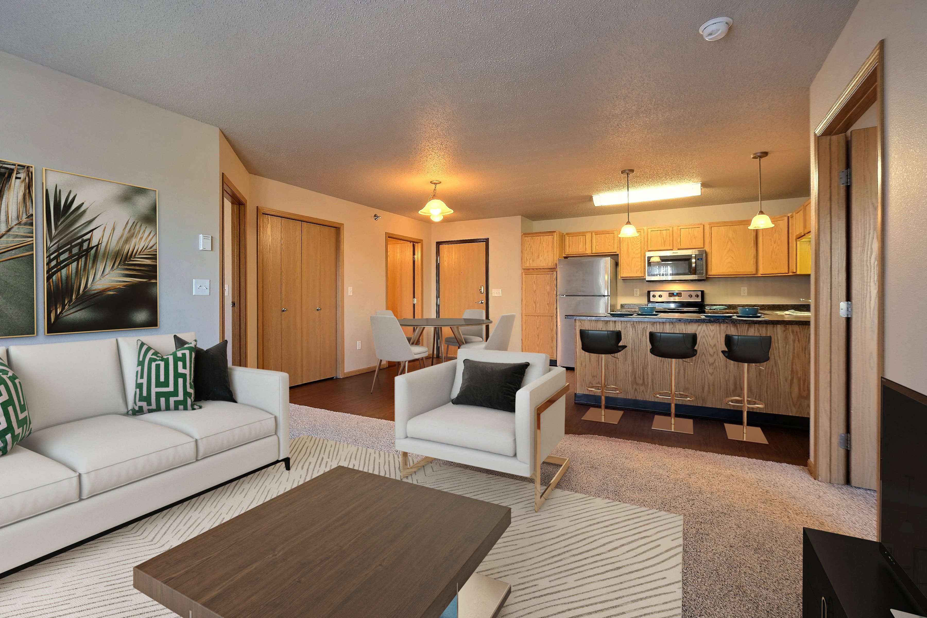 Explore our Fargo Apartments Immerse yourself in the vibrant living experience offered by East Bridge Apartments in Fargo. Choose from our studio, one, two, and three-bedroom floor plans, each designed with your comfort in mind. The keyless entry fob provides convenience, while a dishwasher adds efficiency to your daily routine. Enjoy the luxury of a garage and assigned parking. On-site laundry and extra storage make your living experience hassle-free. Our community amenities, including a fitness center and community room, provide spaces to unwind and connect with neighbors. Nestled in Fargo, our apartments offer proximity to essential services, schools, and attractions. Whether you're heading to North Dakota State University, exploring the Fargo Air Museum, or enjoying the lively scene in Downtown Fargo, East Bridge Apartments is your gateway to the best of the city. Schedule a tour today, and let our team assist you in finding your ideal living space.