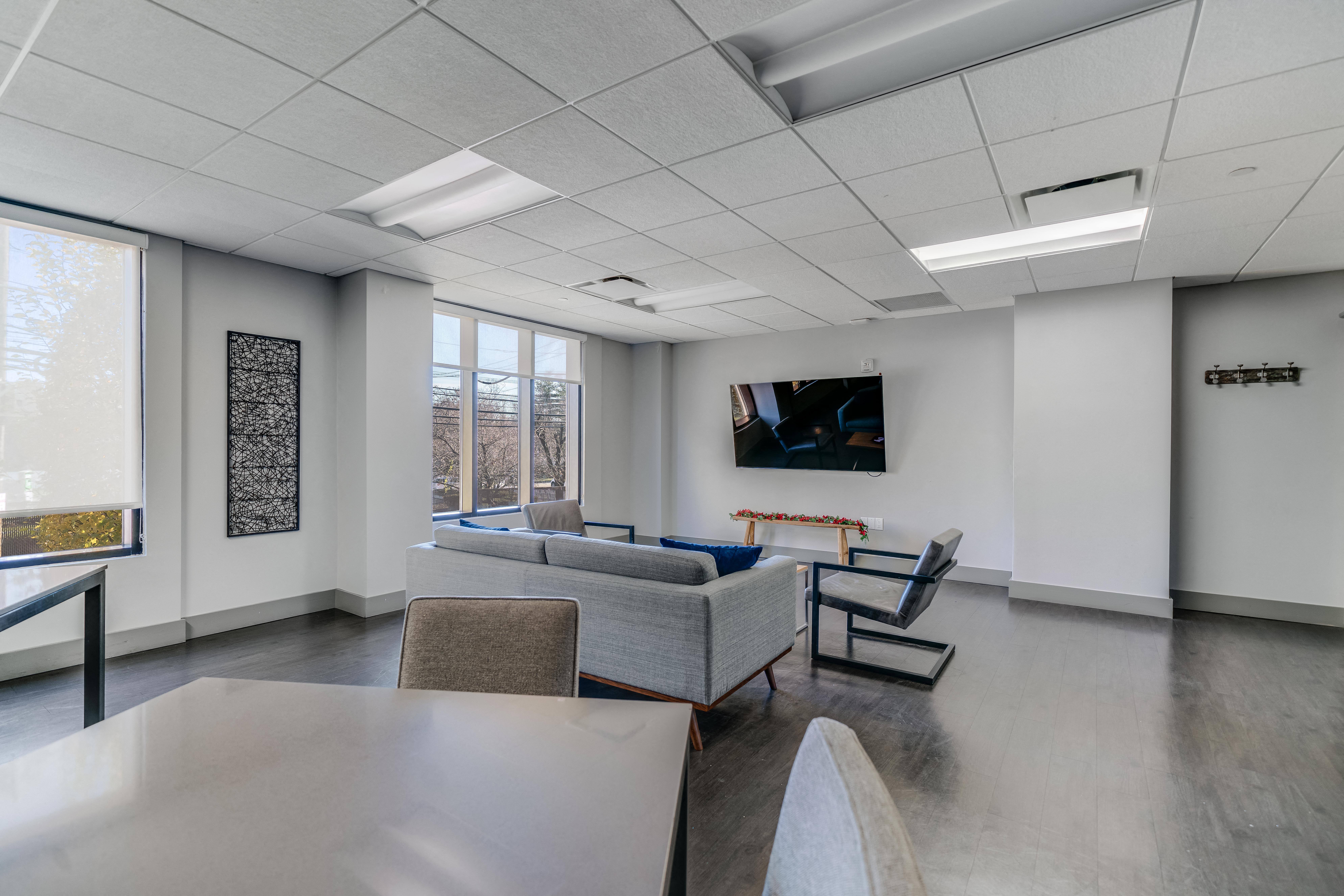 Take your furry friend for a walk on our premises, and you will discover a landscape that feels peaceful despite being in a highly urbanized area. There are infinity gardens that culminate with a gazebo, a picnic area with grills, and a playground for the young residents. But, of course, we are still in the city, so you will also see bike racks, garages, guest parking spots, and EV charging stations. Inside, you will find a sophisticated lounge where you can meet the neighbors, a state-of-the-art fitness center, and a sauna. In addition, there are management and maintenance teams on-site. You can talk to them directly or send all requests, questions, and payments online—we have systems in place for all of that. Other conveniences include package receiving, concierge services, and a walkable location with easy access to public transportation.