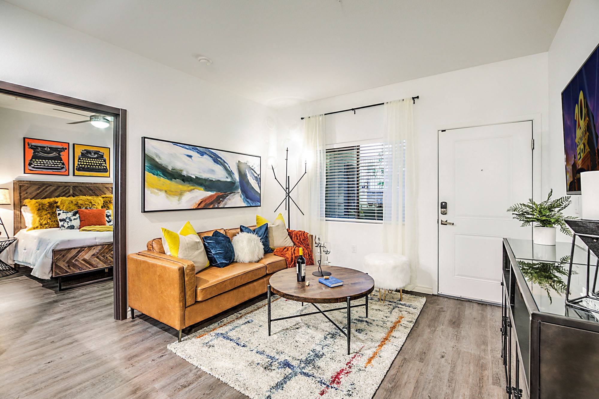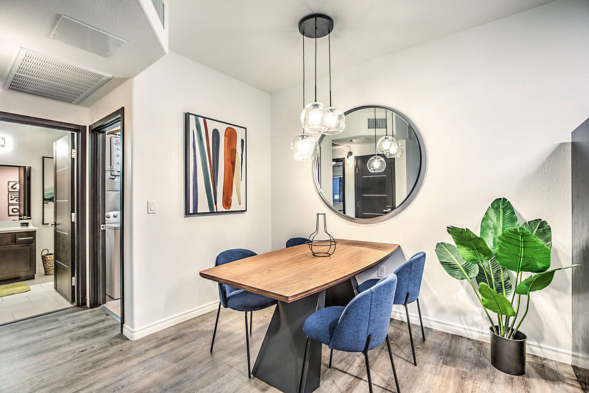 - Hardwood vinyl plank flooring throughout living space, dining and bedrooms