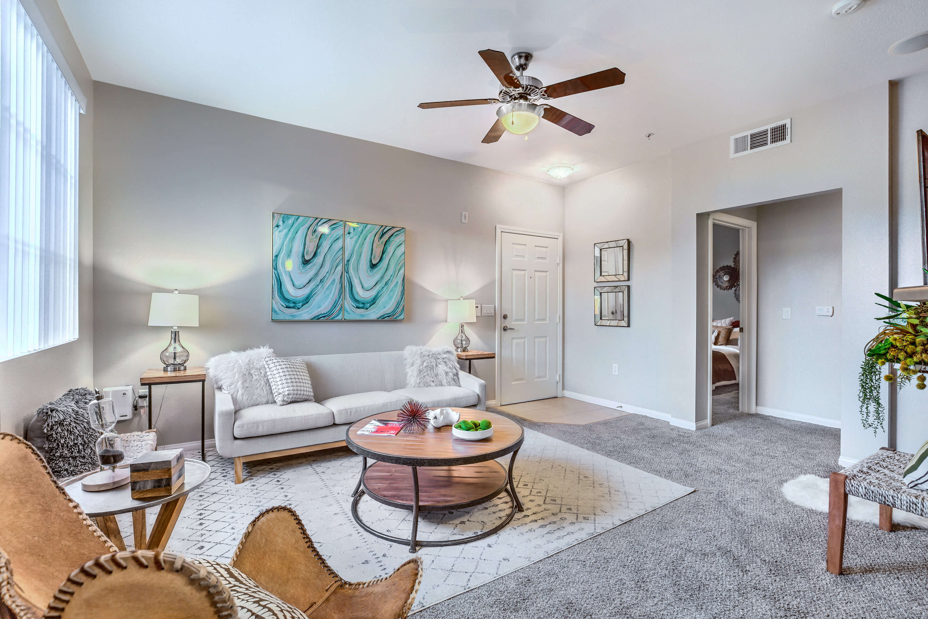 - Ceiling fans in living areas and bedrooms
