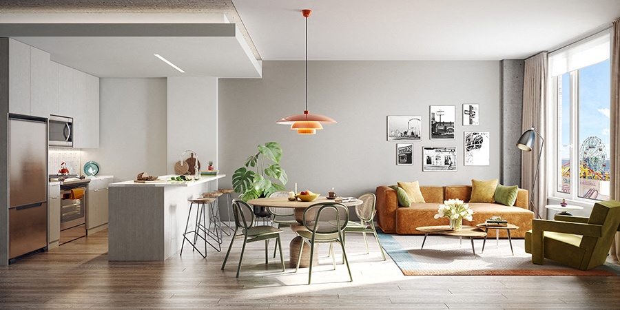 Apartments in Coney Island All dimensions are approximate and subject to construction variances. Plans may contain minor variations from floor to floor.
