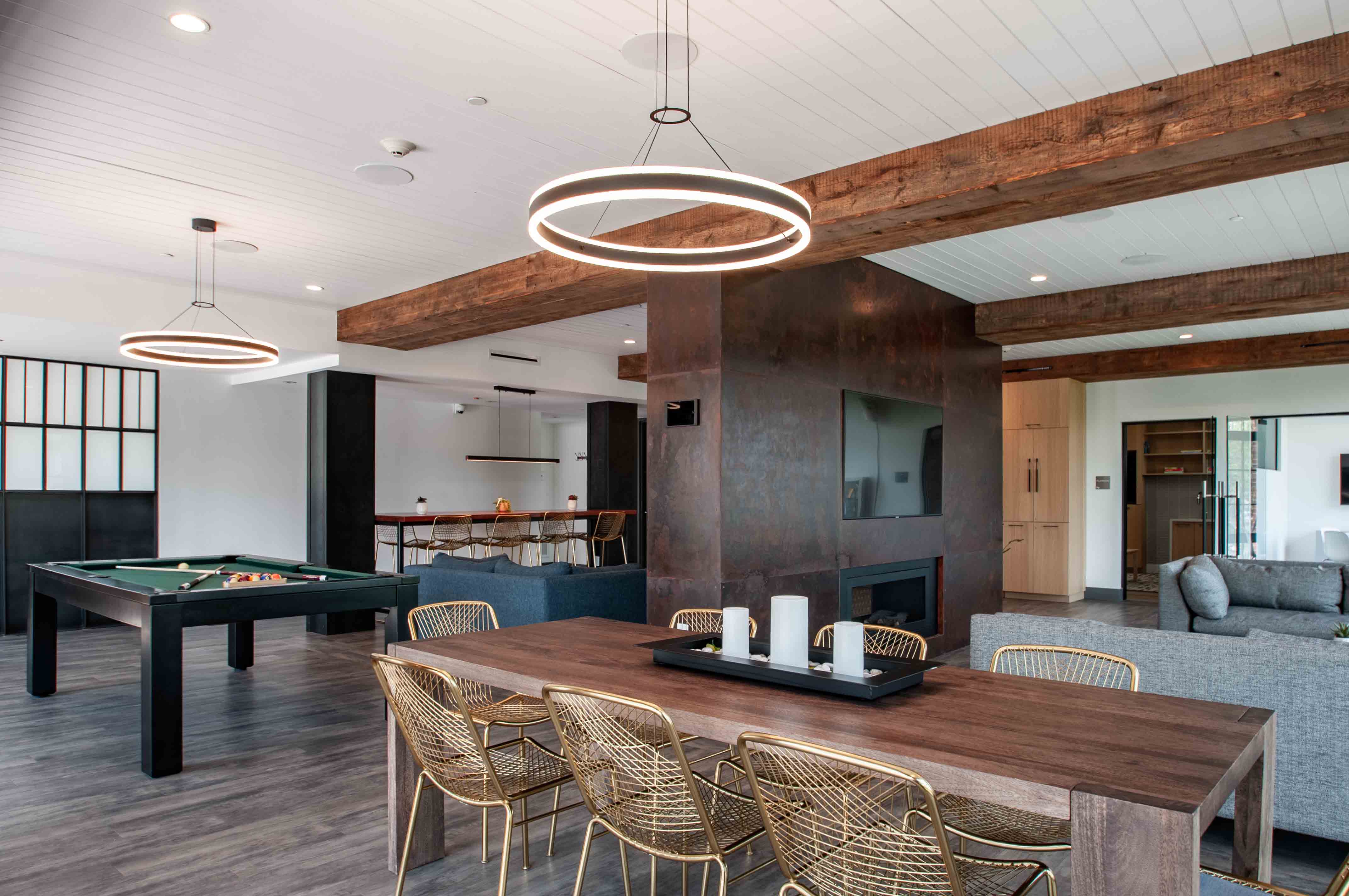 - Indoor/outdoor amenity deck with BBQs, fire pit, outdoor kitchen, & sun loungers