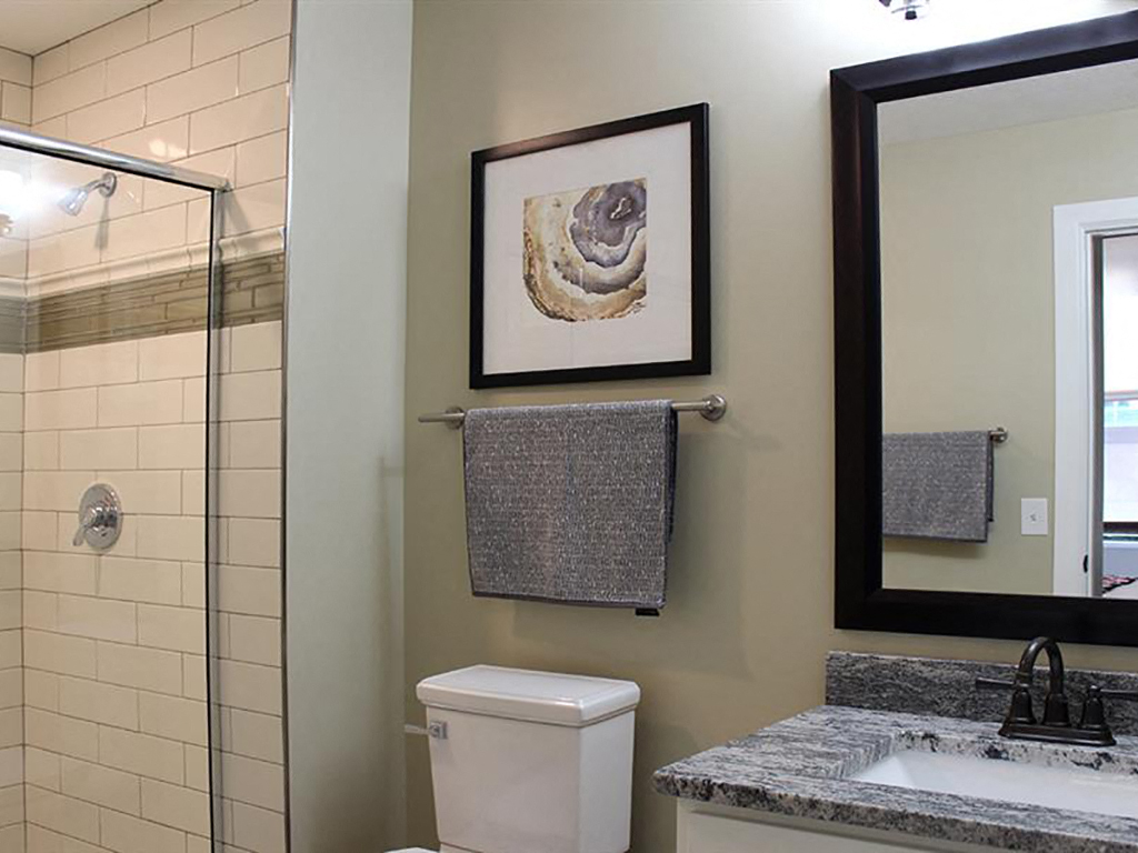 appliances, granite countertops, beautiful white Shaker-style cabinets in the kitchens, eye-catching ceiling fans, and hard-surface flooring. In