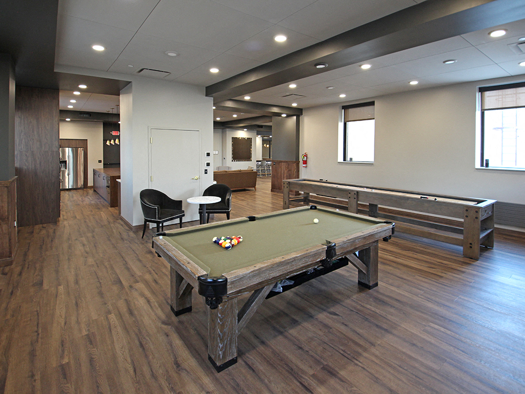 - Community Lounge & Rooftop Deck - located on the 15th floor with hip lounge atmosphere, features interior and rooftop bar area, community tables, fireplace, multiple large screen TVs, and free WiFi access