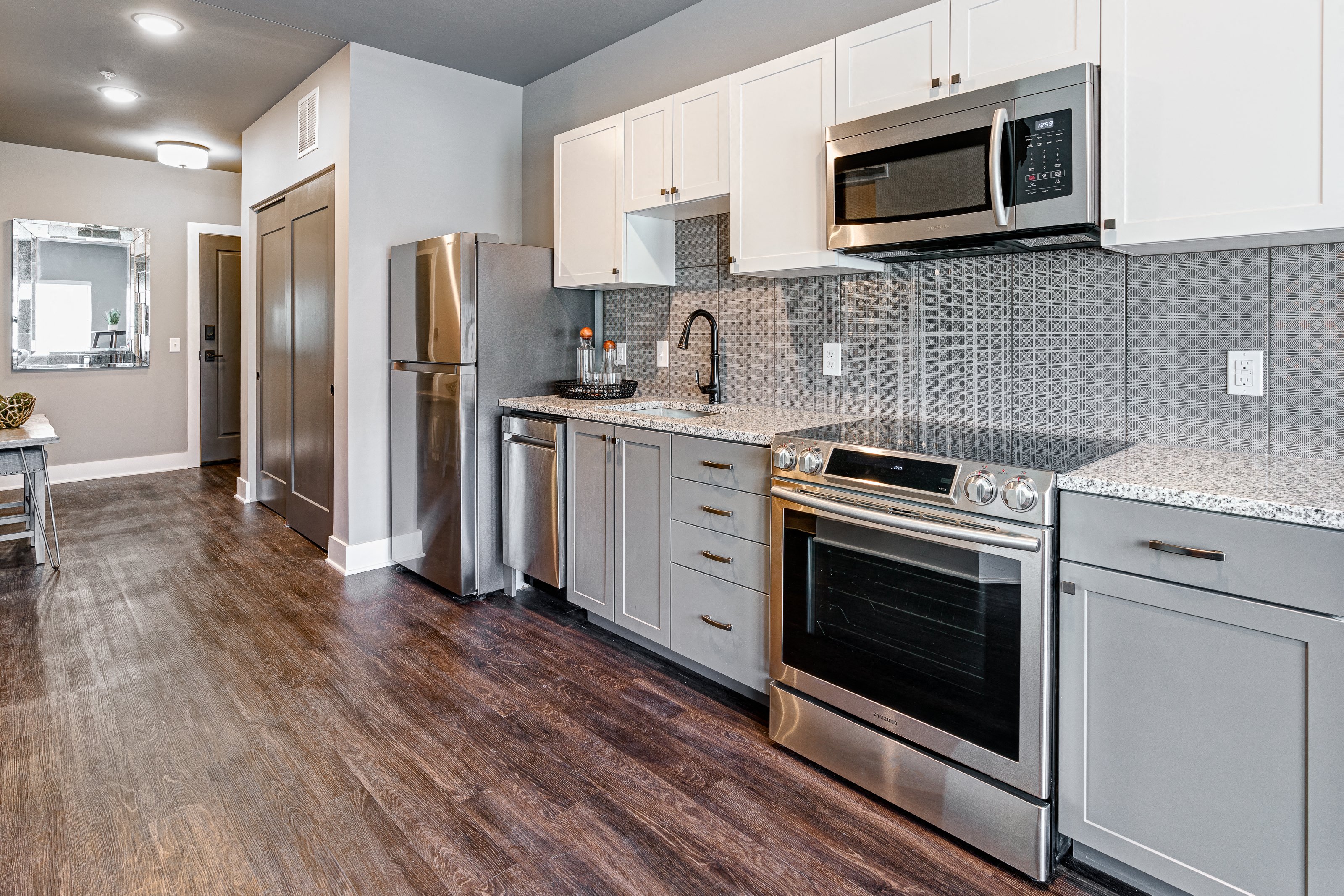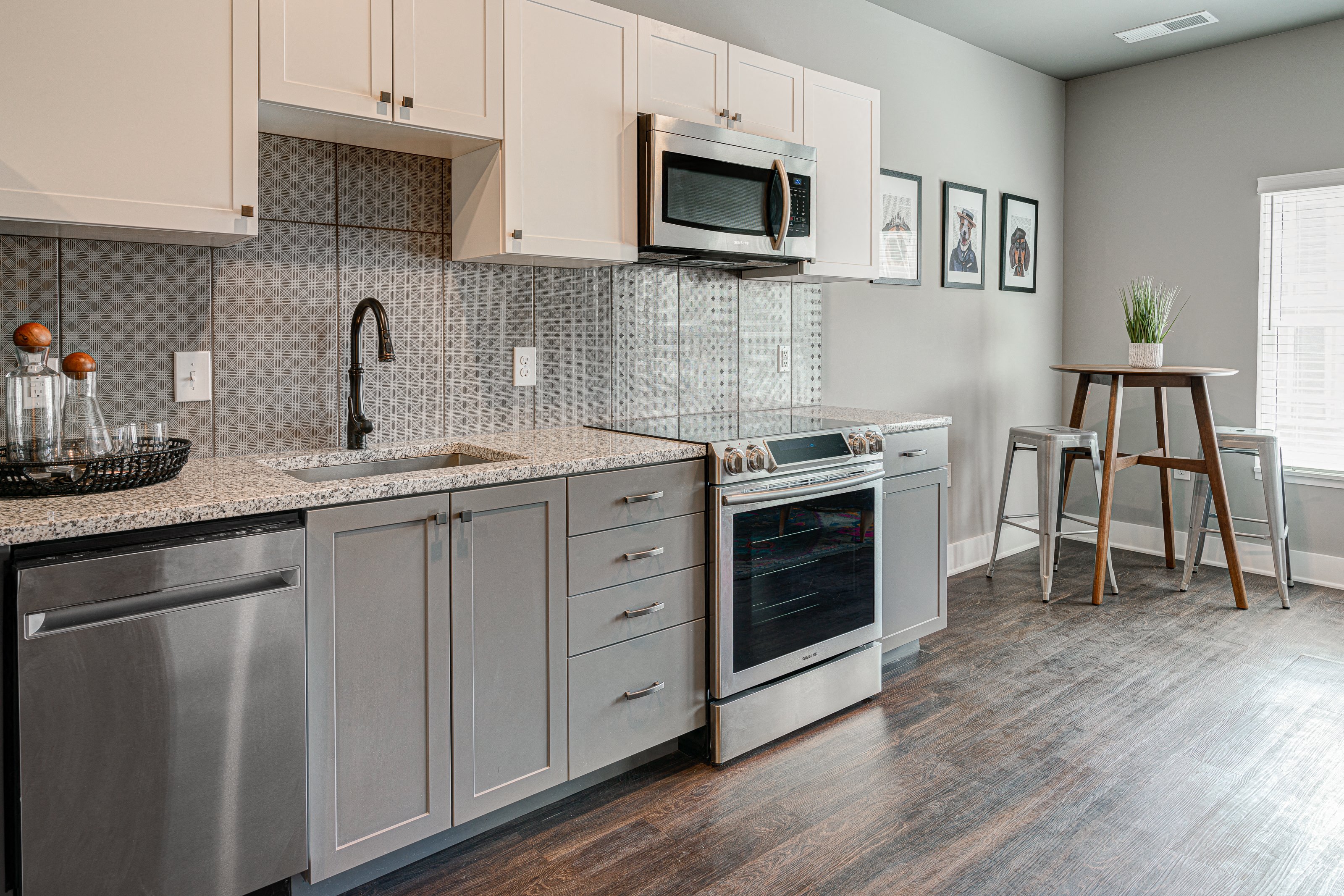 Give luxury living your personal twist inside these studio, one-, two- and three-apartments in Columbus, OH. A wealth of high-end amenities are waiting for you at The Beeker. Choose from our expansive floor plans and take advantage of all the exclusive amenities our apartments for rent in Columbus offer. Apartments for rent in Columbus With thoughtfully laid-out floor plans, finding one to accommodate your dream lifestyle is easy. Space is never an issue, as our layouts start at 536 square feet, and the most expansive ones exceed 1165 square feet. Available in studio, one-, two- and three-bedroom floor plans, our homes feature all the high-end luxuries of modern living, including ample storage (walk-in closets, coat closet, and pantry), full-size and efficient washer and dryer in unit, and high-end kitchen and bathroom finishes (granite counters, stainless steel appliances, glass showers). Our long list of amenities makes staying in just as exciting as going out. You’ll always find something exciting to do within our shared areas. Our pet-friendly Columbus apartments feature exclusive spaces such as on-site parking, a rooftop community room, and deck, and fob access with a secure package room. Our location is great, too, since it brings you close to Short North bars and restaurants and Ohio State University. And when you want to stretch your legs, hop over to Goodale Park for a walk in the sunshine. See for yourself what The Beeker offers by stopping by for a visit. Contact us today to set the date.