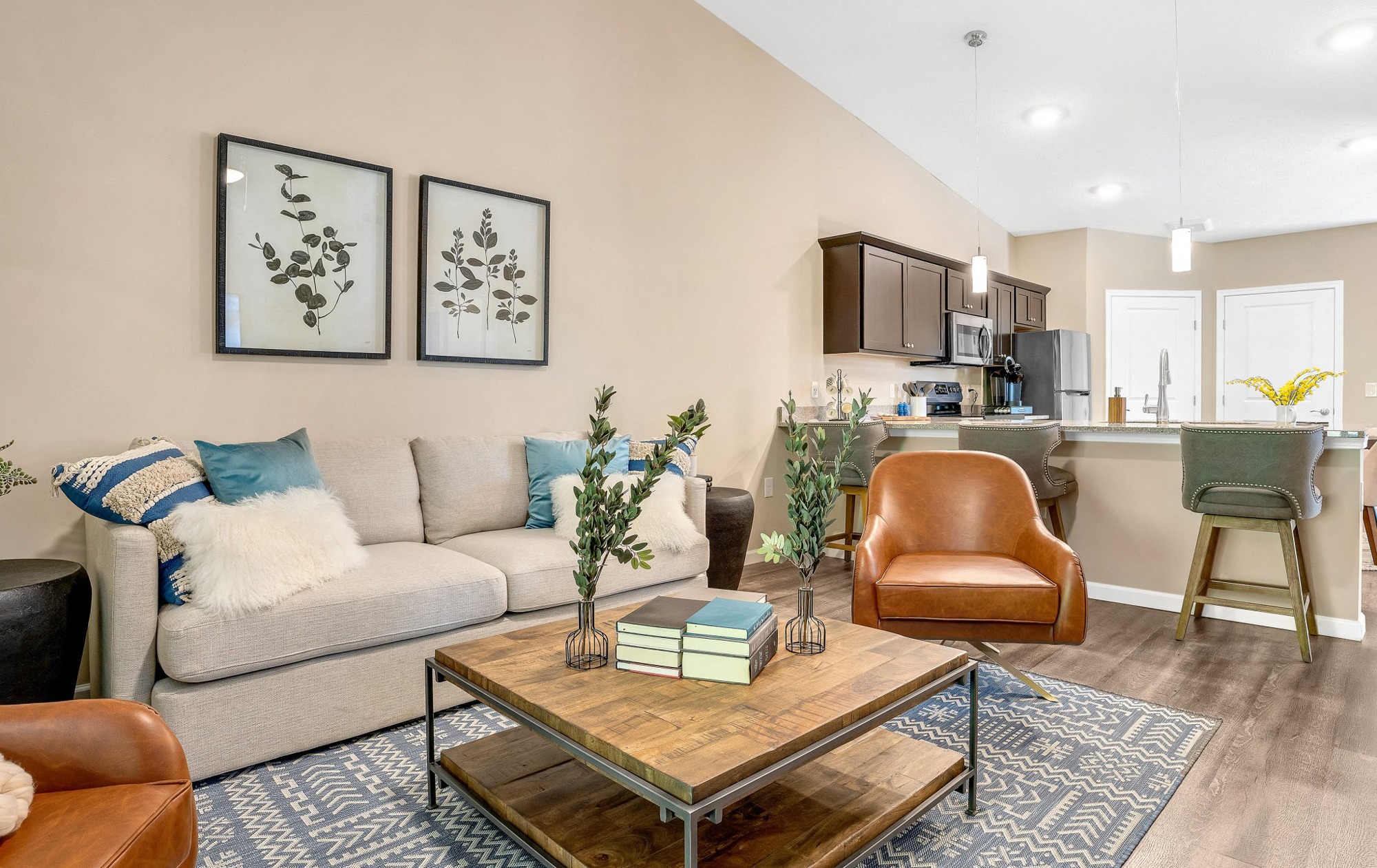 - Single-story, open floor plan design