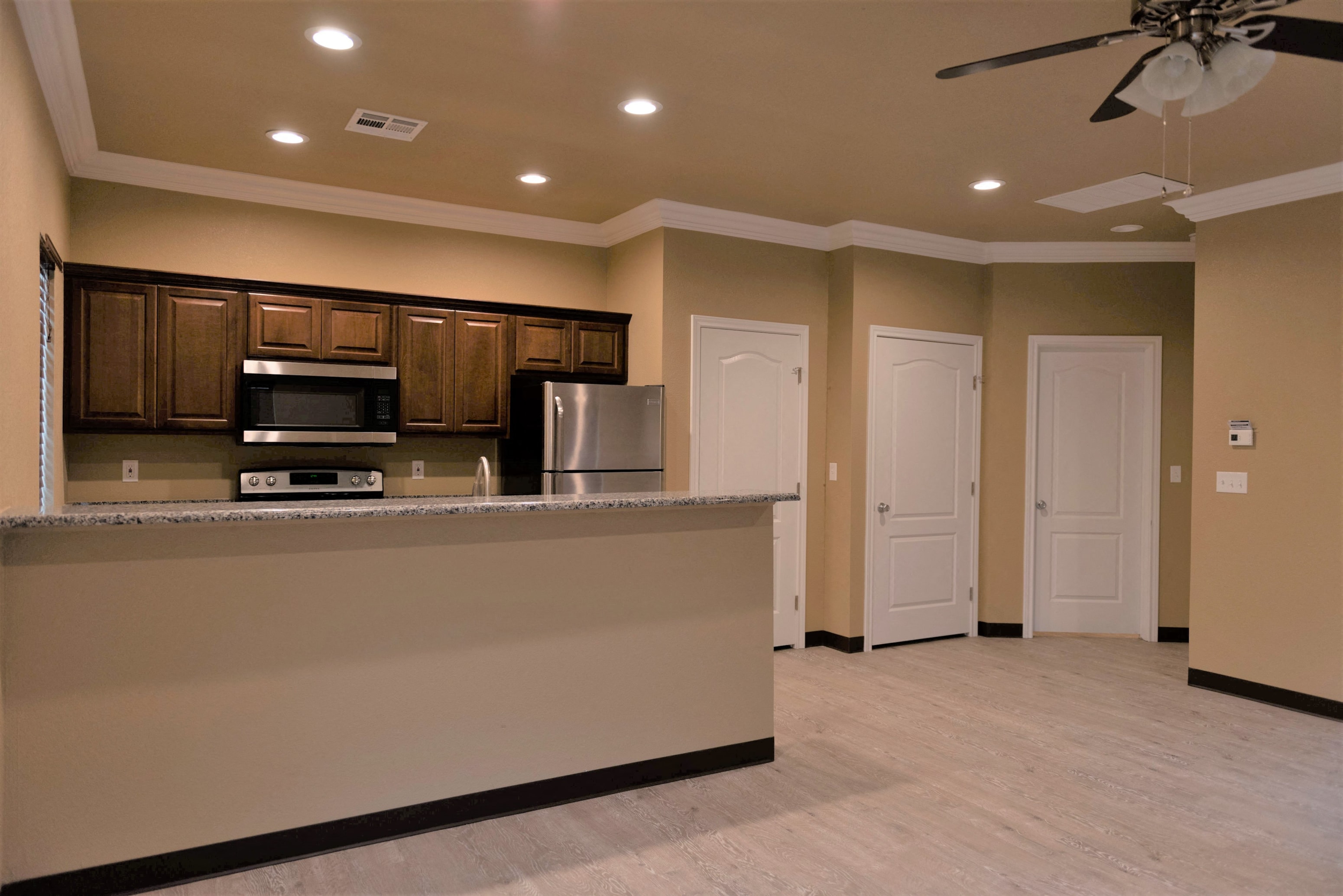- Stainless Steel Appliances: Refrigerator, Dishwasher, Range, and Microwave Vent Hood