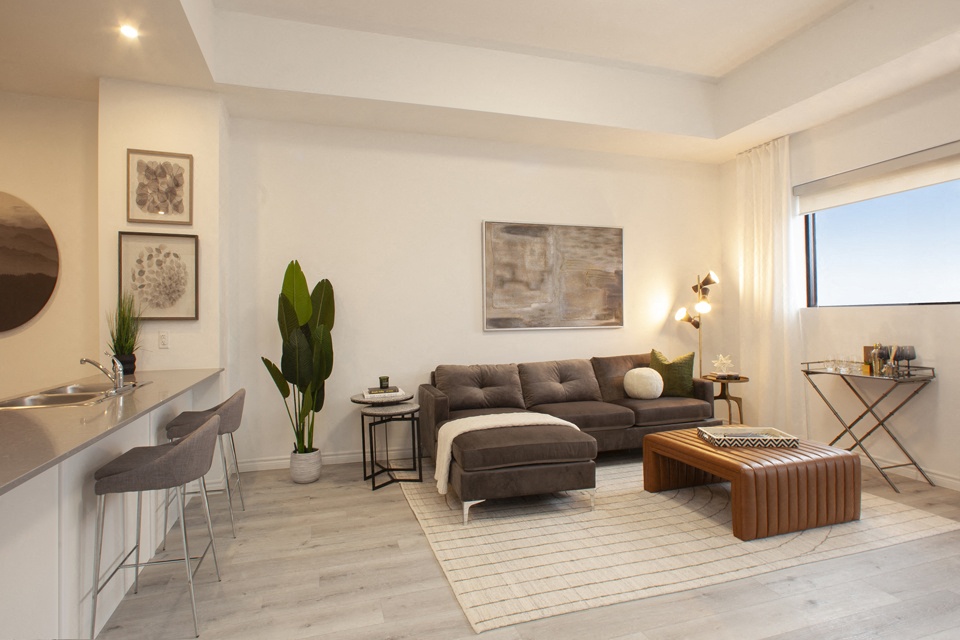 Designed with you in mind, these spacious suites offer top-of-the-line finishes, and the building's concrete design ensures exceptional soundproofing. Choose from spacious one, two or three bedroom apartments with functional, open-concept layouts and 9' ceilings. Each suite features a stainless steel fridge, stove, over-the-range microwave and dishwasher as well as in-suite laundry. Premium finishes include quartz countertops, a built-in breakfast bar and hard surface luxury vinyl plank and ceramic tile flooring throughout. Most suites include a private balcony or patio for relaxing and enjoying the outdoors and air conditioning is included for your comfort.