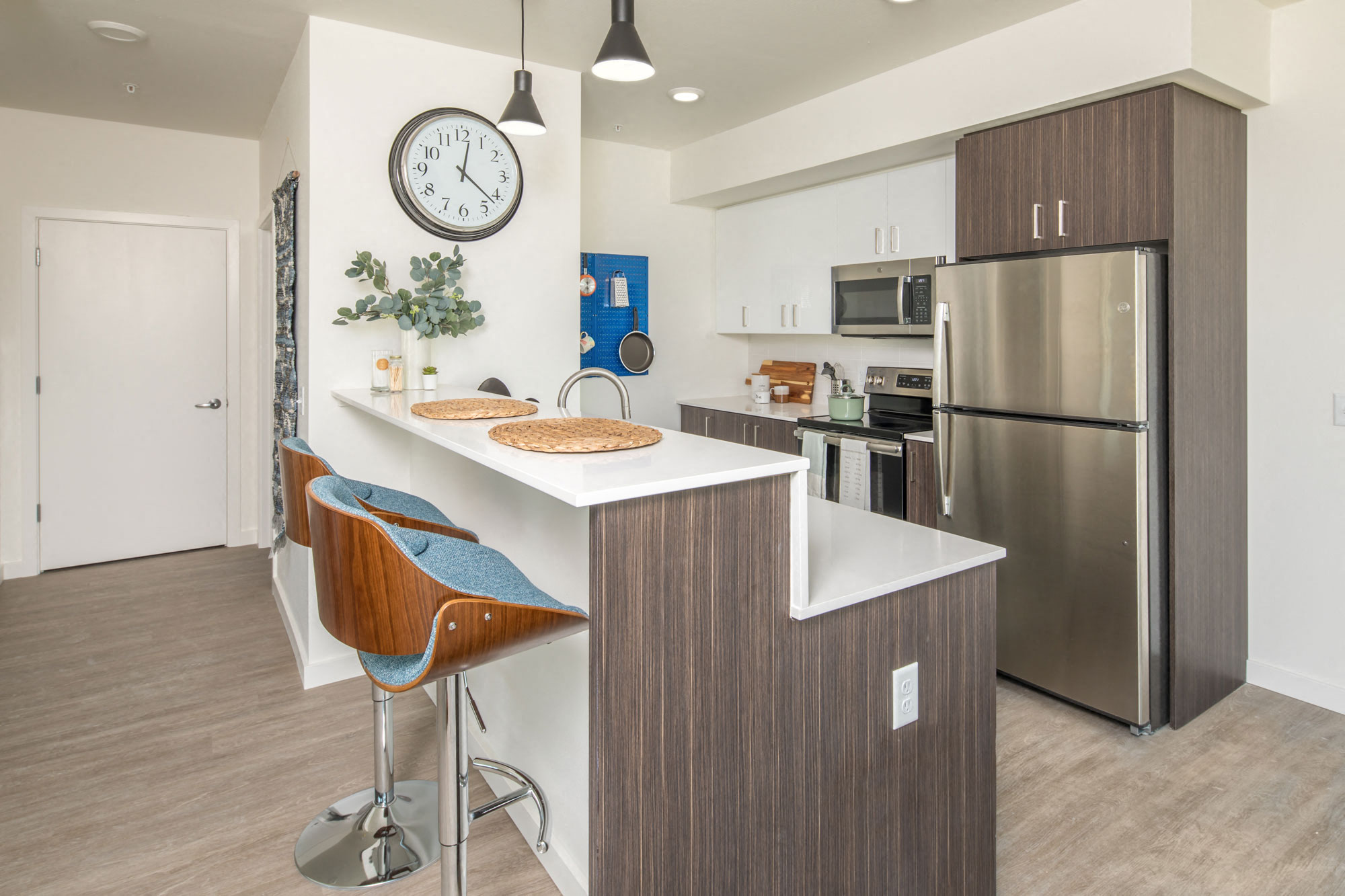- Modern, urban architecture and interiors with thoughtful, high-quality finishes including quartz countertops and stainless-steel appliances