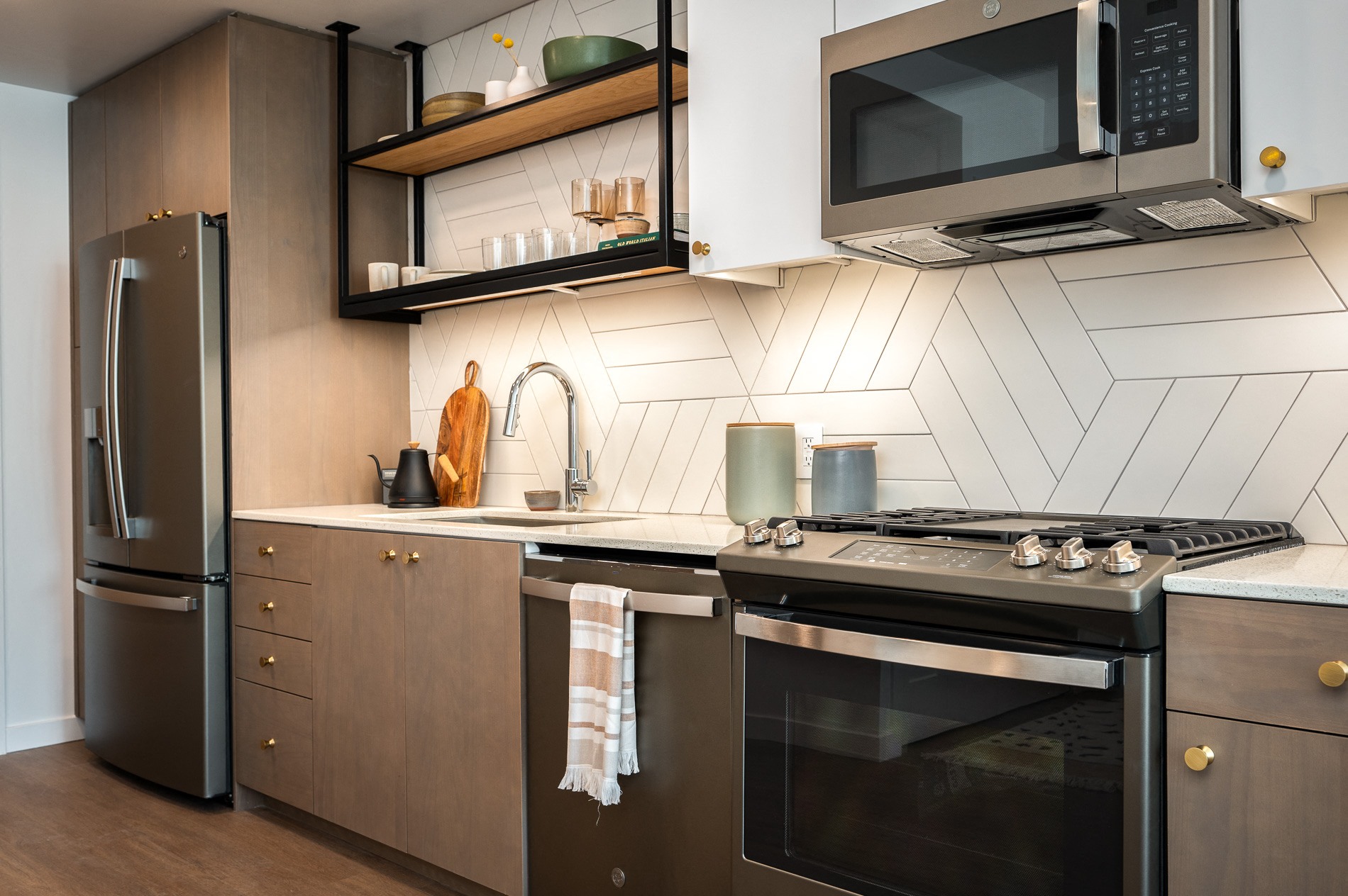 Thoughtfully designed, our studio, one and two bedroom-bedroom apartment homes are enriched by features such as air conditioning, smart locks, in-unit washers and dryers, and customizable modular closets. Select apartment homes also offer stunning city skyline views.