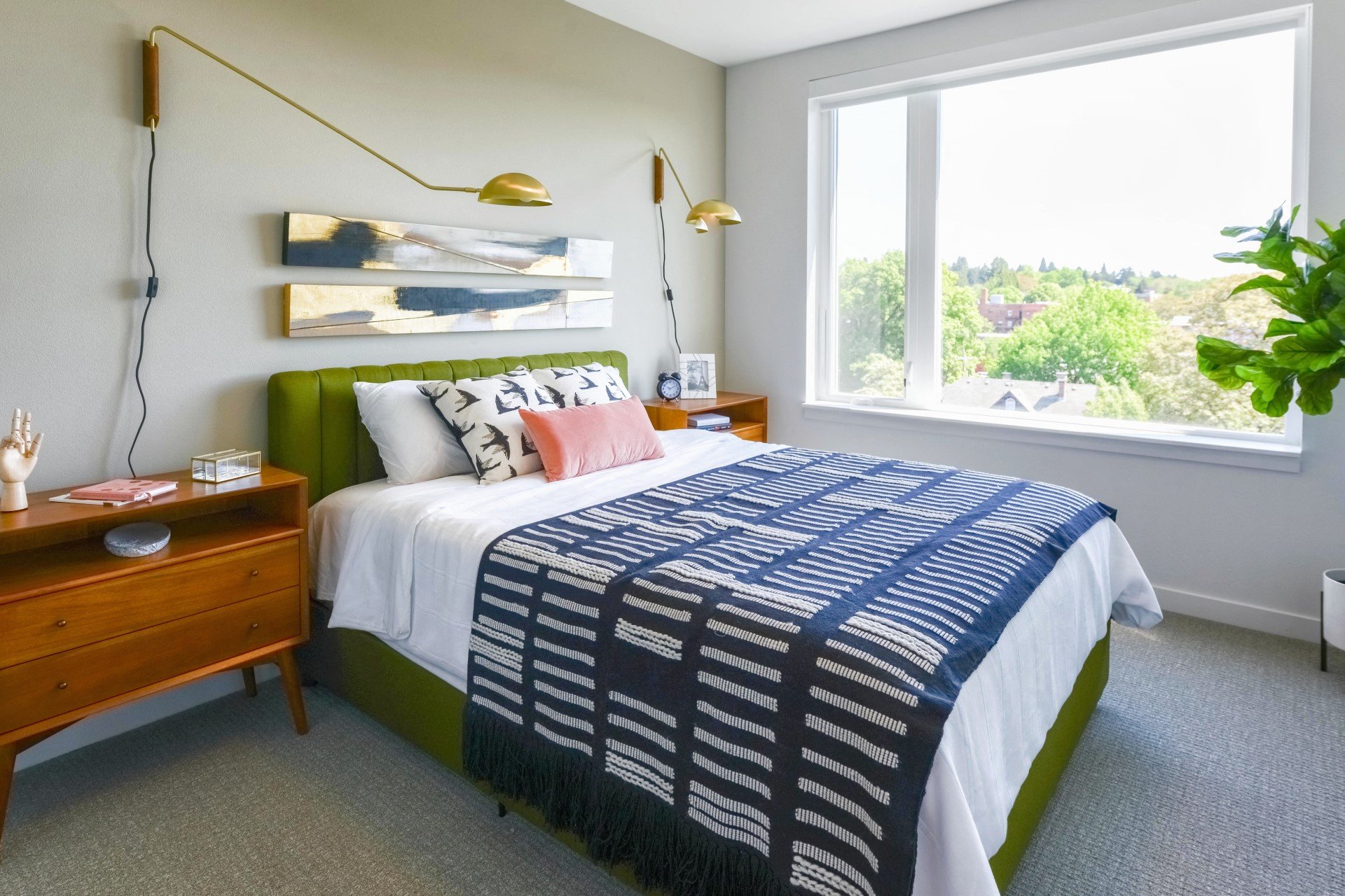 - Expansive oversized windows with roller shades
