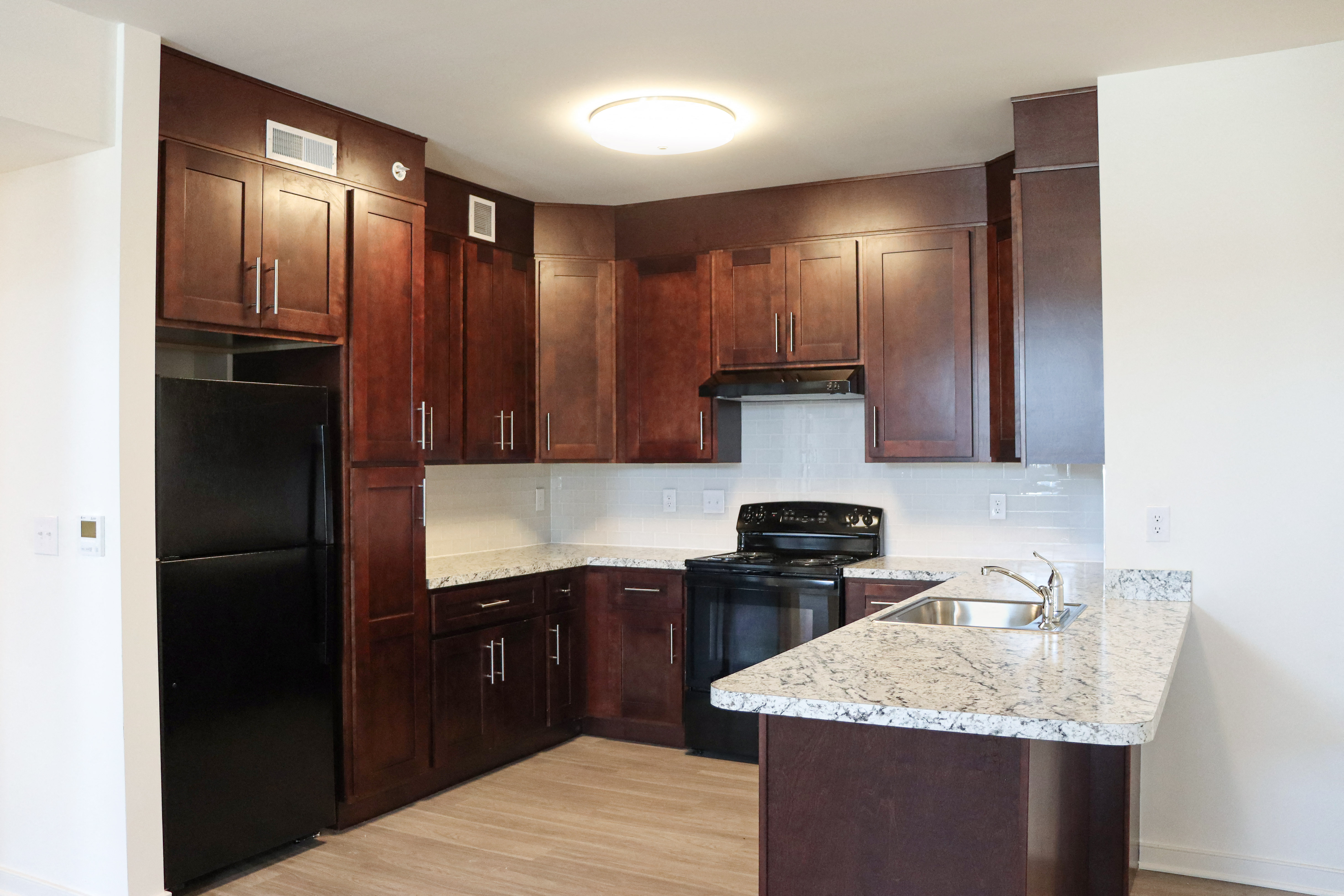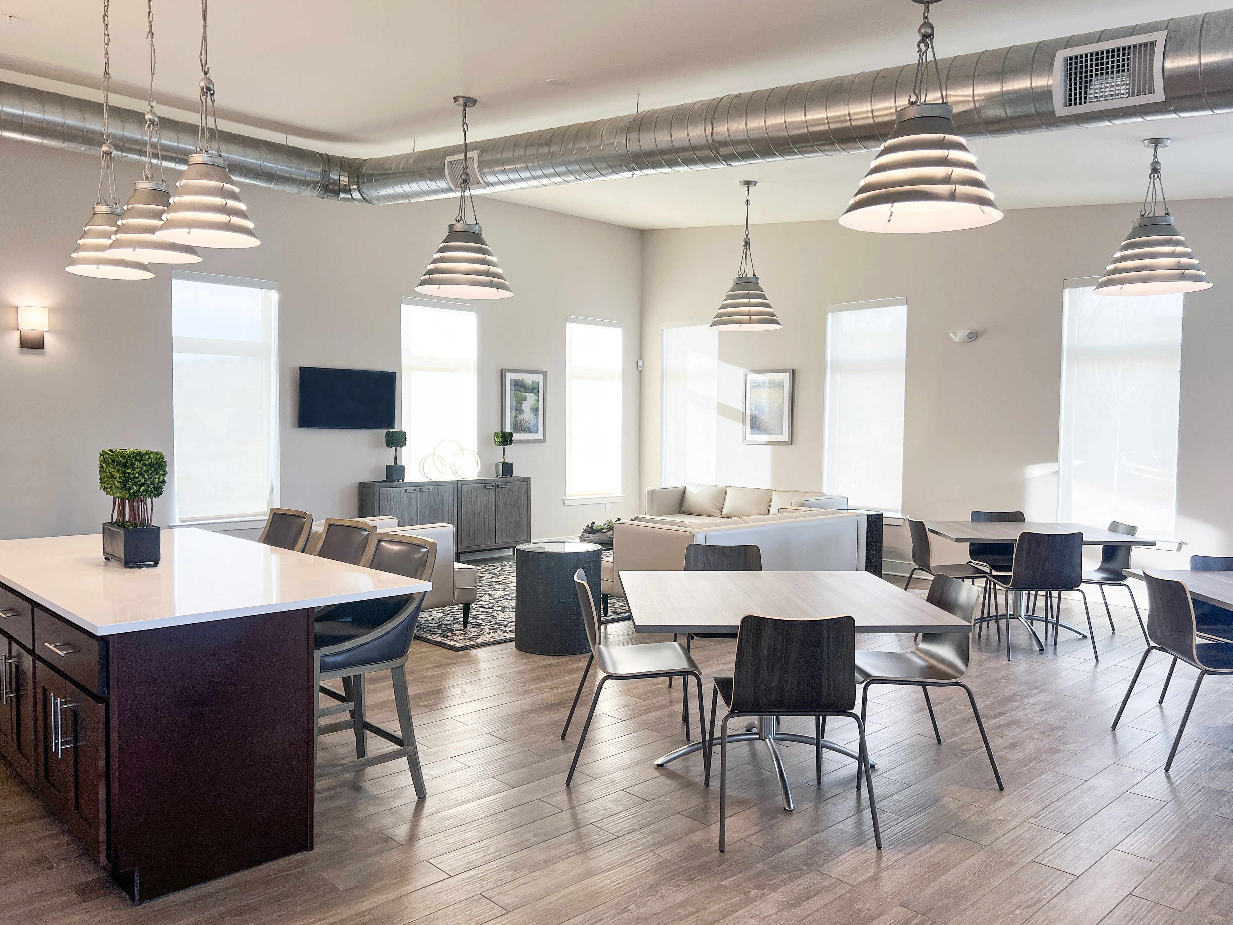 The apartments are well-appointed with plank flooring, large windows, fully-equipped kitchens with modern appliance packages, granite counter tops, tile back splashes, islands of breakfast bars, patios or balconies, full size washers and dryers, energy efficient finishes, climate control, and LED lighting throughout. Moreover, the community is pet-friendly, has complimentary off-street parking, a playground, and is designed to Passive House standards, which will make The Willows at Valley Run a leader in sustainability and energy efficiency.