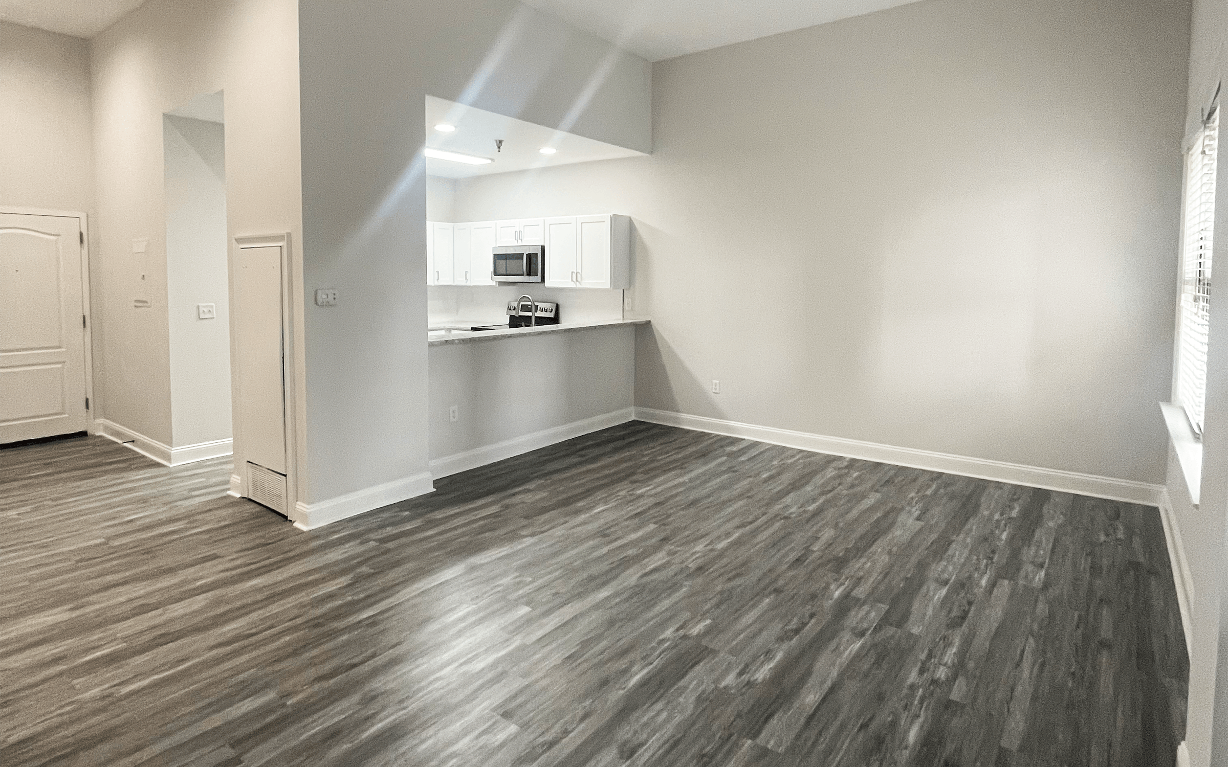 - Wood-Style Plank Flooring in Kitchen & Living Areas