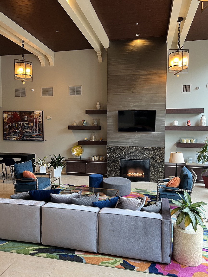 - Luxury boutique, hotel–inspired lobby