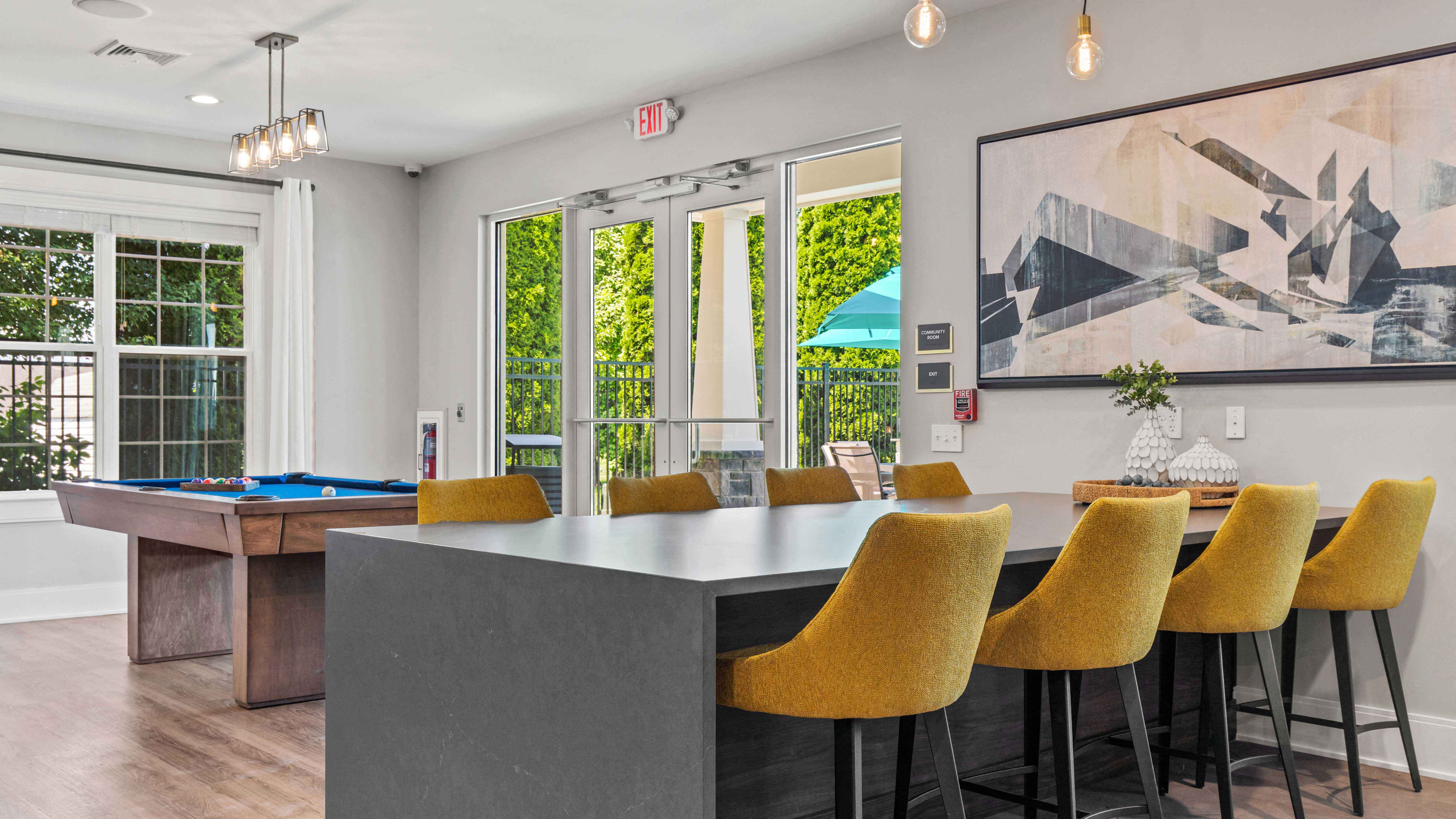 - Clubhouse With Lounge, Community Room, Billiards and Private Work Stations