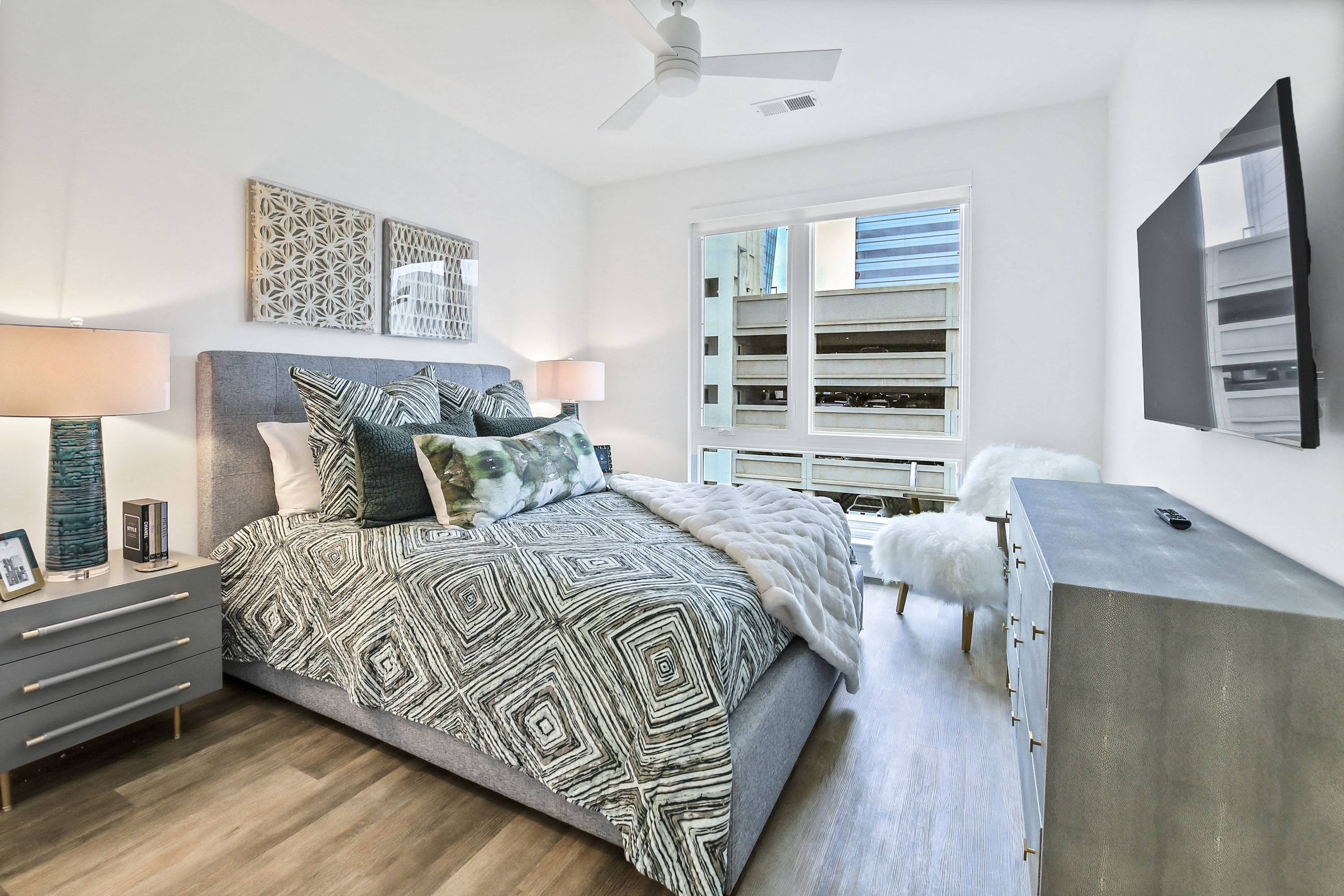 The Palms offers a variety of floor plans with studio, one and two bedrooms, ranging in size from 458 to 1,158 square feet, with 10’ ceilings on the top floor. Our Downtown Columbia apartments have contemporary finishes, modern designer flooring and lighting, quartz countertops and energy efficient appliances. The building boasts wide corridors and elevator access to all floors with designer décor in all common areas. When minutes matter, live where you work and play.