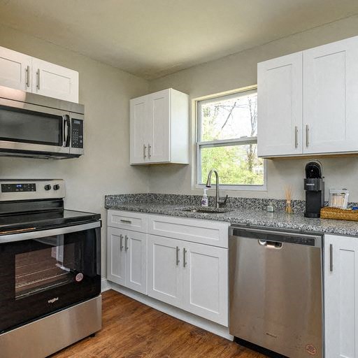 This 2 bedroom, 1 bathroom home is part of the NEWLY RENOVATED Gilbert Townes. This community is made up of 32 units professionally managed by Blue Ridge PM and has a dog park coming soon. The home features beautiful LVT flooring and granite counter tops. The kitchen appliance package includes stainless: refrigerator, oven, microwave and dishwasher. This unit sits in front of a large parking lot and a spacious backyard. Rent INCLUDES a washer and dryer in the unit.