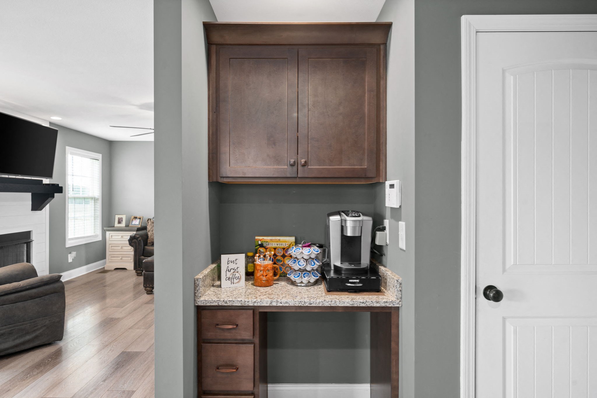 Gorgeous 3 bedroom, 2.5 bathroom home on corner lot with level fenced in backyard with 2 gate access. This lovely home also comes with extended concrete parking out front and a concrete patio extended off the covered back deck for all your entertaining needs. Featuring beautiful flooring, gas fireplace, a coffee bar, kitchen island, tiled flooring, tiled backsplash and SS appliances. Enjoy the tray ceilings and double vanities w separate tub shower in the primary. Laundry room is conveniently upstairs w bedrooms. 3rd bedroom has matching luxury laminate flooring as main. Bonus room above the garage and extended covered front porch sitting area! Pet friendly up to 2 medium dogs, no cats. $250 non-refundable pet deposit; $25 pet rent, per pet. Minutes from Ft Campbell!