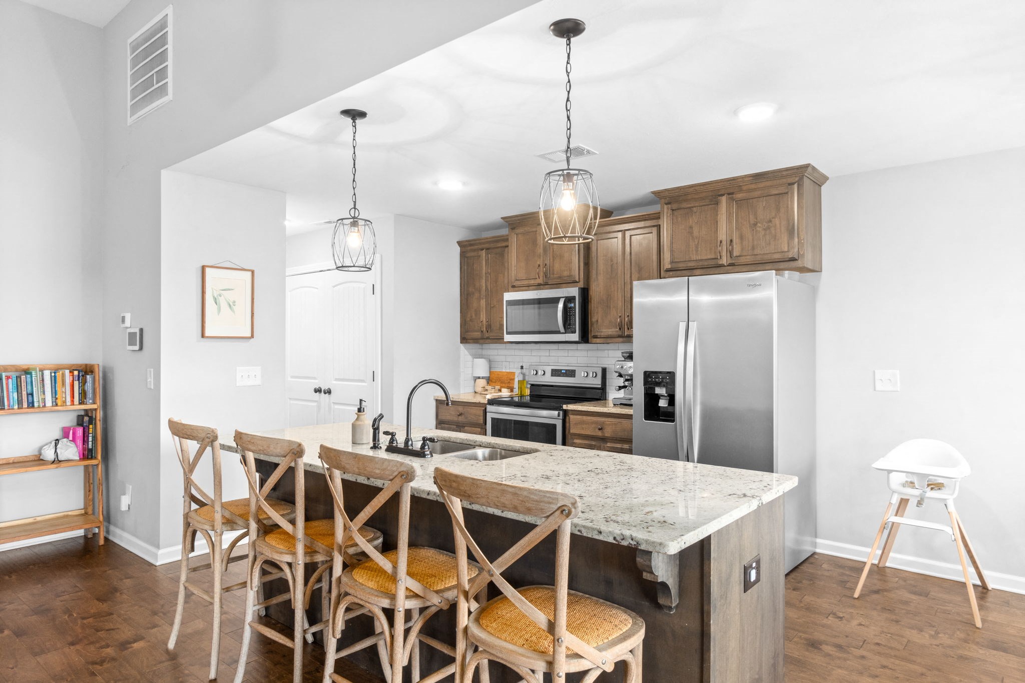 Gorgeous one level living with all the upgraded features and modern colors. Level lot, fenced in backyard, gorgeous kitchen, stainless steel appliances, engineered wood flooring, back splash, granite countertops, double trey ceilings in primary bedroom with walk-in closet. Washer and dryer and trash included. Up to 2 medium sized dogs welcomed with nonrefundable pet deposit of $250, $25 monthly...