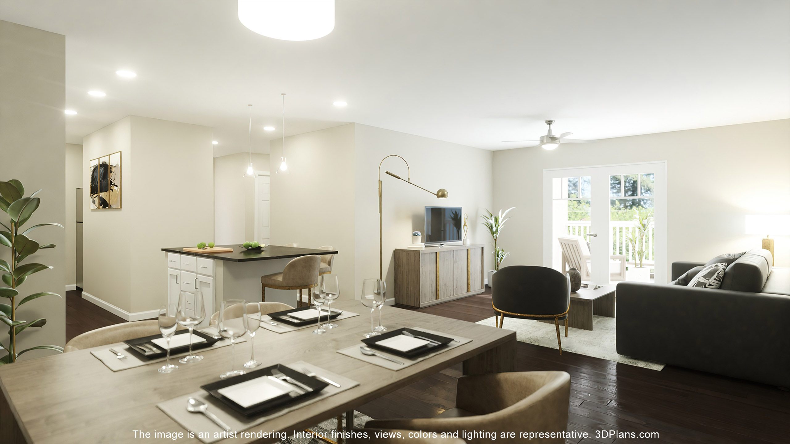 - Hardwood-Inspired Plank Flooring in Living Areas