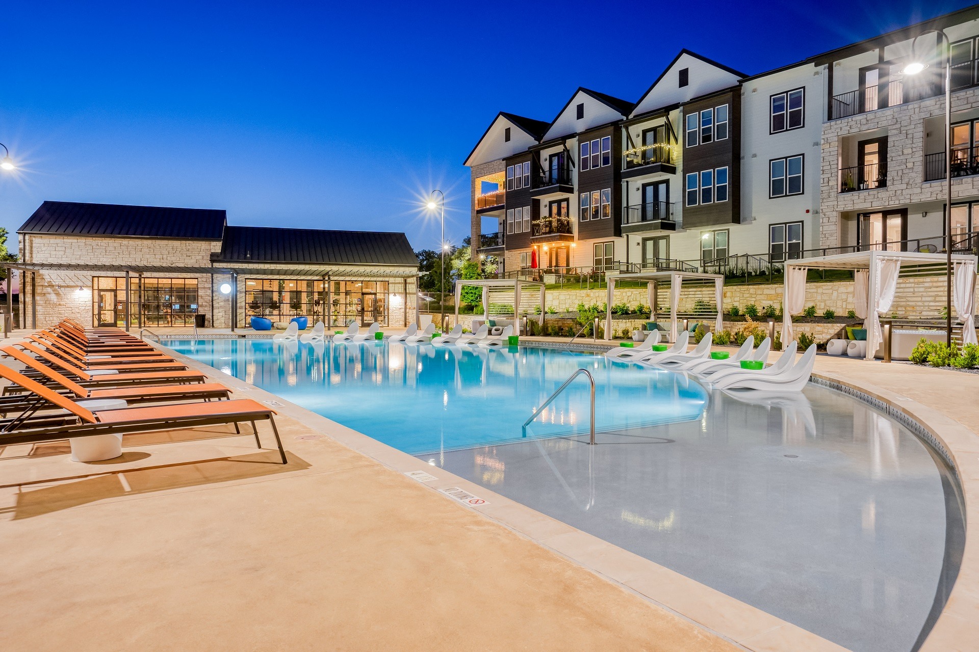 - Crescent-Shaped Pool with Tanning Deck