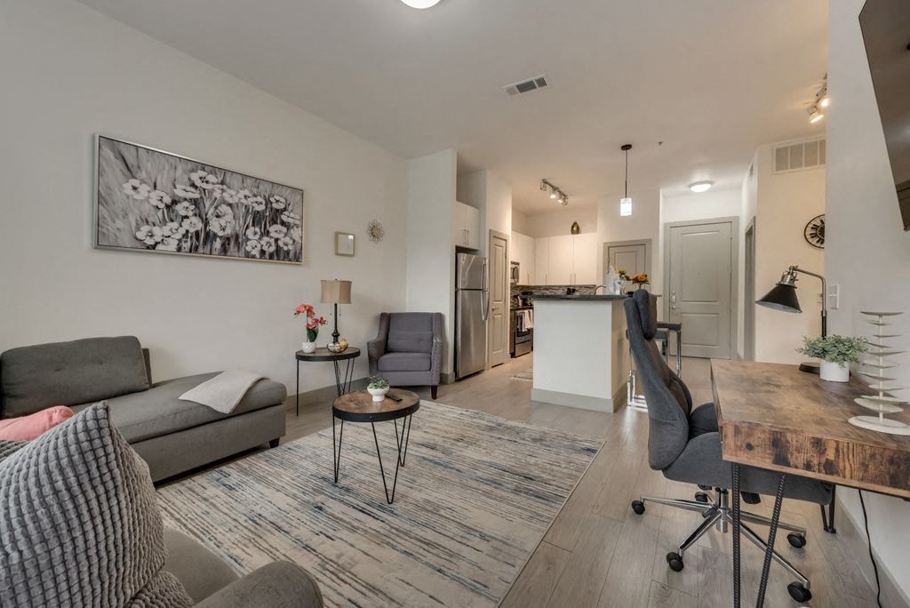 Upgraded 2nd-floor condo with modern appliances, perfect for professionals or couples on an extended stay in DFW. Designed for versatile living, working, and playing. Includes a work desk in the living room. Check OTHER THINGS TO NOTE for details on pet policy, parking, keys, utilities and more.