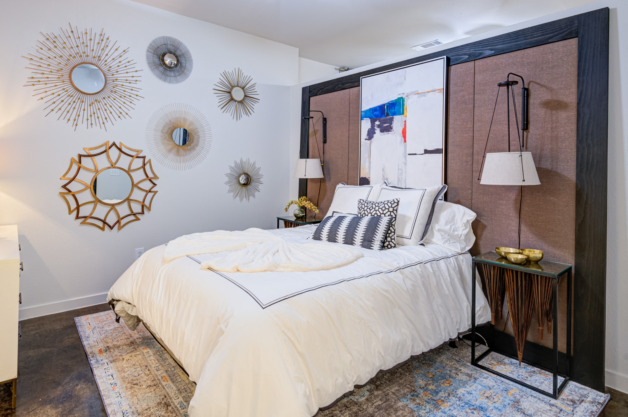 - Barn-style sliding doors in bedrooms