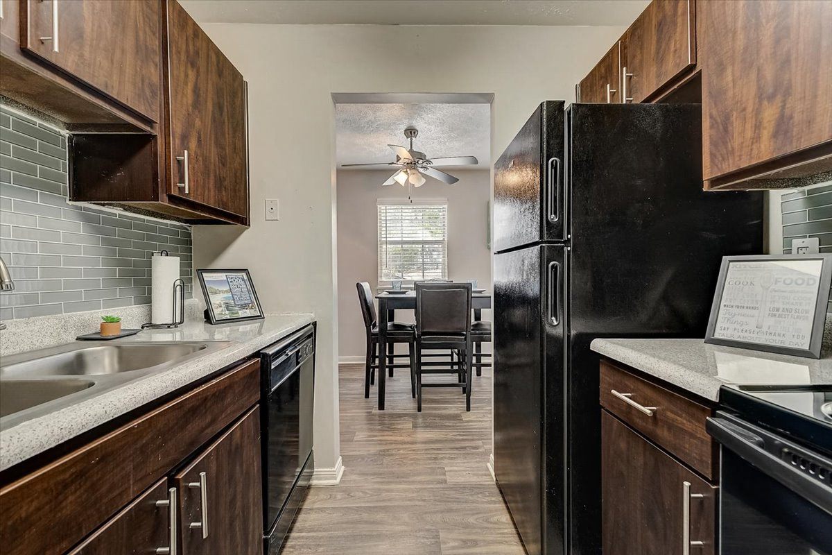 WatersEdge Apartments offer spacious floor plans that include newly renovated interiors, featuring wood-style flooring, black kitchen appliances, mosaic-tiled backsplashes, new designer light fixtures, USB charging outlets, and so much more! Classic Upgrade: Oak finish cabinet doors Black kichen appliances Oak hardwood-style flooring and carpet Upgraded light fixtures Glass-mosaic brown backsplash Warm sand paint Modern Upgrade: Refinished cabinetry and New doors in an espresso finish Black kitchen appliances Grey hardwood-style flooring and carpet Upgraded light fixtures Artistic-infused grey backsplash Cool grey paint. Applicants over 18 years of age are subject to approval through a third-party screening service that verifies: Government issued ID Household income Rental history Credit screening Criminal history screening. Additional information may be required to provide final approval of your rental application. If this is the case, we’ll contact you via email with instructions on what to do next. Documents requested during this process will only be used for screening and verification purposes. Floor plans are artist’s rendering. All dimensions are approximate. Actual product and specifications may vary in dimension or detail. Not all features are available in every rental home. Prices and availability are subject to change. Rent is based on monthly frequency. Additional fees may apply, such as but not limited to package delivery, trash, water/sewer, pest, amenities, etc. Deposits vary. Please contact community for more details.