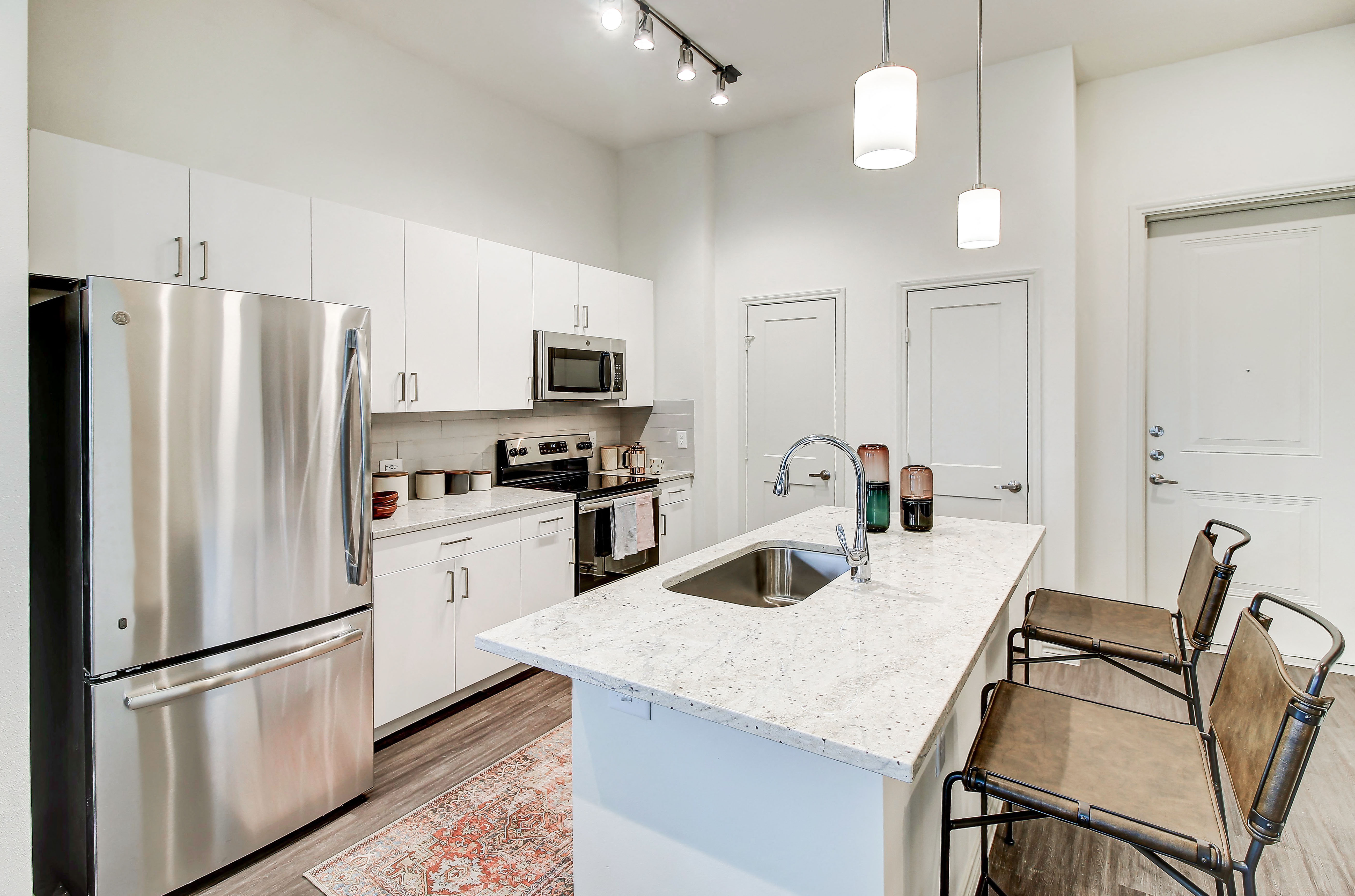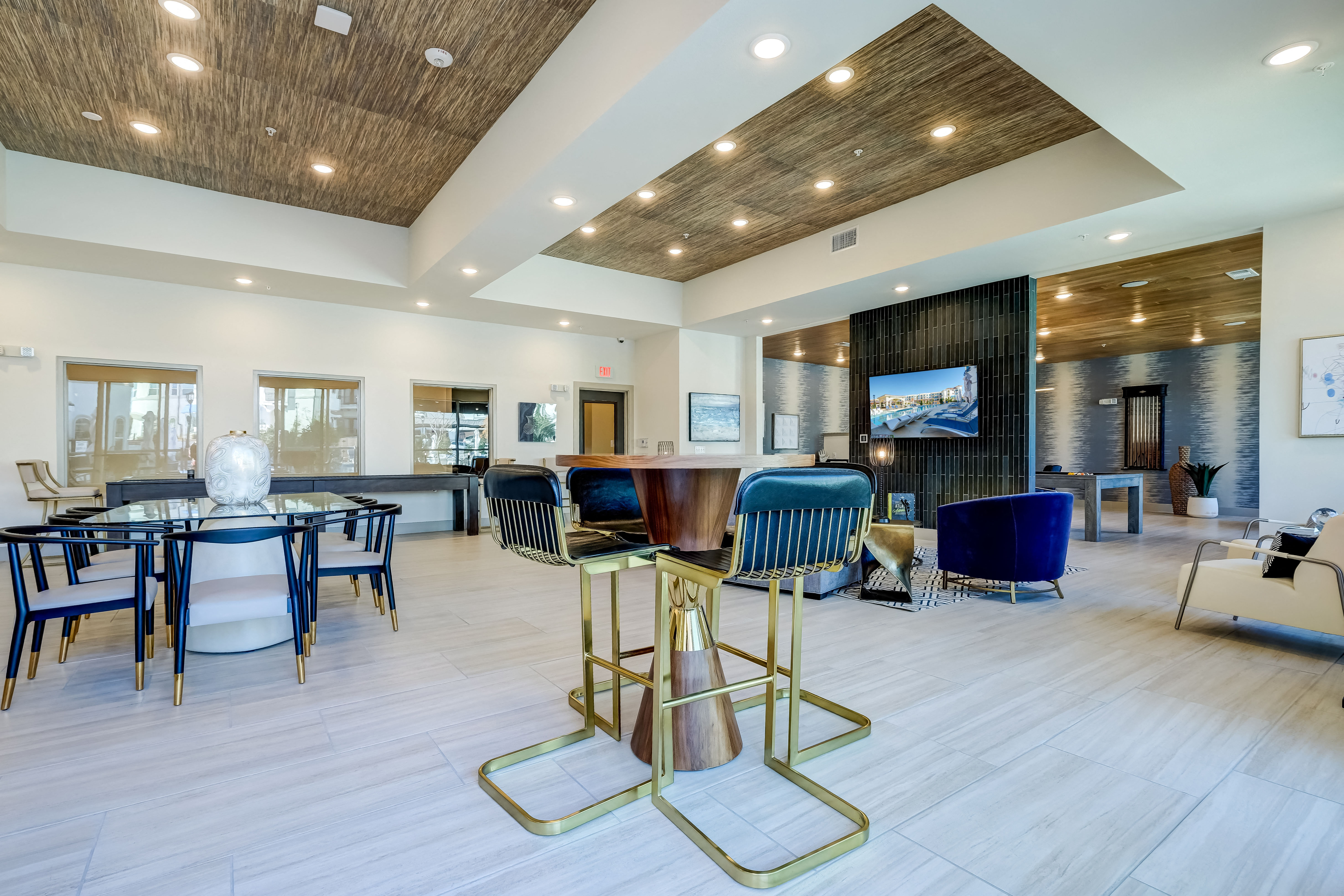 - Resident clubroom and lounge with a co-working nook and commercial kitchen