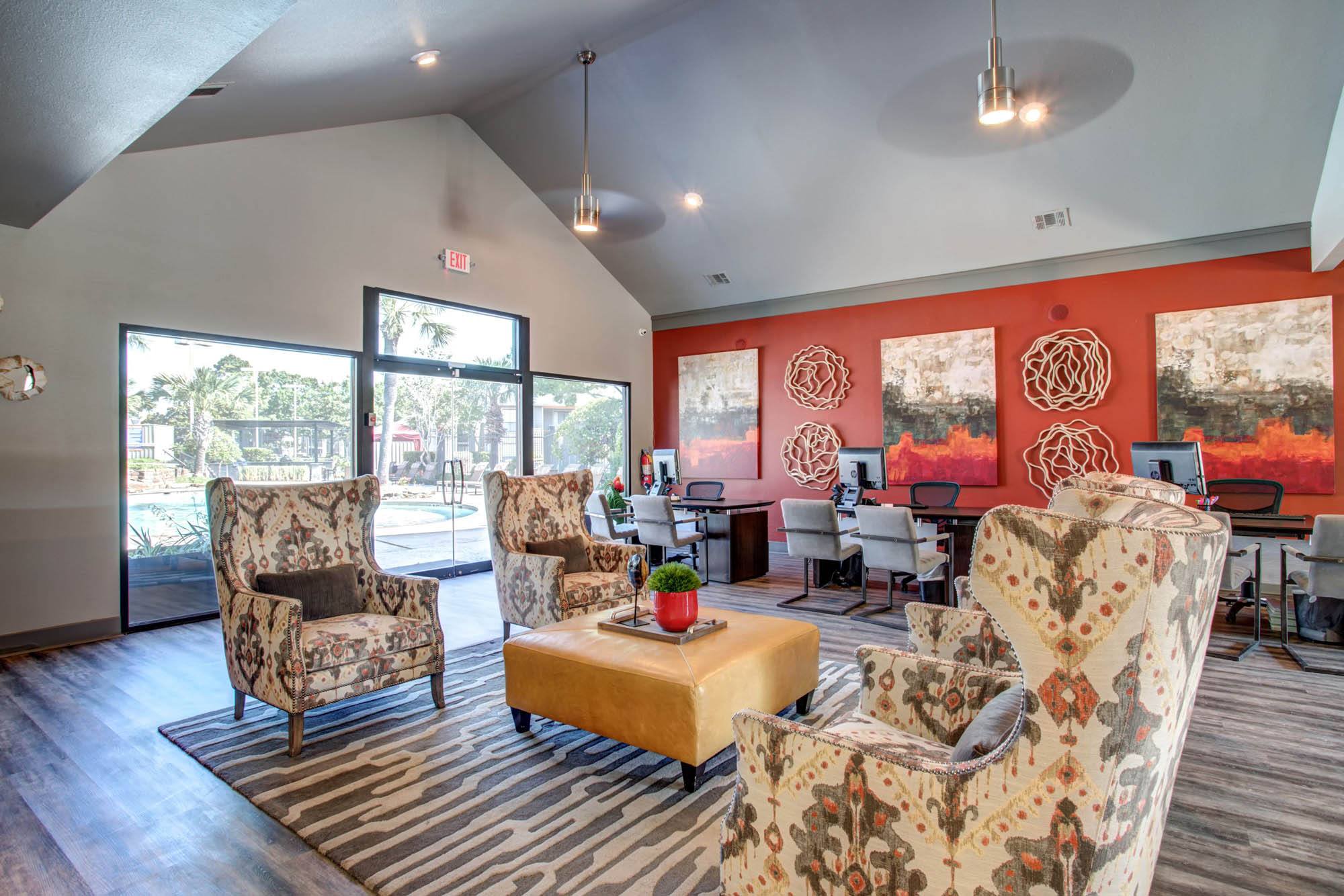Relax like you mean it. After an energizing match on the tennis court, you can smoke some brisket at the grilling area, have a nap in the cabanas, then wash away your cares in the resort-style pool. Ditch your gym membership, too – our fitness center is open 24/7. For extra convenience, our gated community also boasts a laundry facility and a business area for your work-from-home duties.