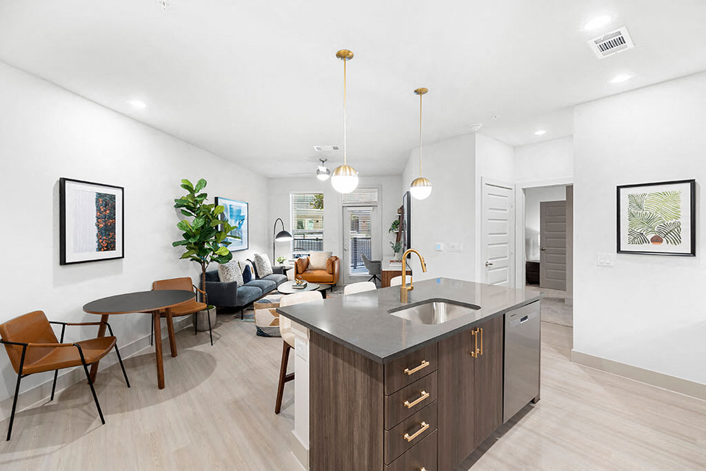 - Wood-style plank flooring in kitchen and living areas