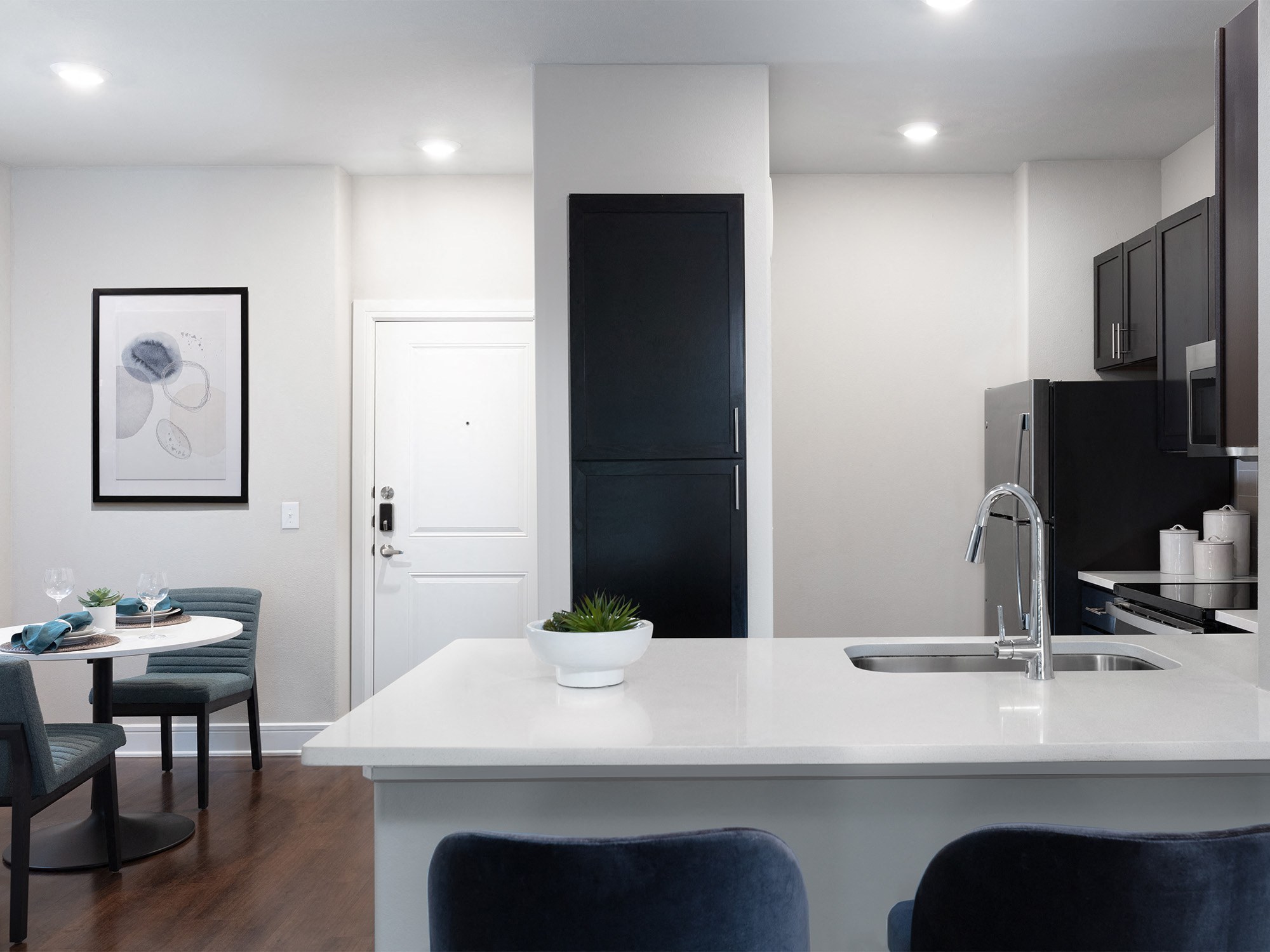 We invite you to explore our one and two bedroom spacious, contemporary apartments in Irving, TX! AVE Las Colinas boasts a variety of floor plans to meet every renter’s needs, including apartments with attached and detached garages. We are a pet-friendly community. All of our floor plans feature 9-foot ceilings, stainless steel appliances, quartz countertops, shaker-style cabinetry, hardwood-inspired flooring, ceramic tile backsplash, brush nickel hardware, spacious walk-in closets, relaxing garden tubs, a washer and dryer, and a private patio or balcony. Select apartments offer kitchen islands, stand-up showers, and garages. Apartments in Irving AVE Las Colinas is centrally located in the desirable Las Colinas neighborhood of Irving, Texas, convenient for commuting, as well as recreation with Dallas-Fort Worth's largest employers and best shopping, dining, and recreation nearby. Contact us to find out more! Our resort-style community is professionally managed by our attentive and friendly staff who are always ready to provide you with exceptional service. We strive to create an atmosphere where you feel valued and well-cared for, and ensuring your comfort is our top priority. Come and experience the sophisticated luxury and unprecedented convenience of AVE Las Colinas. Explore our available apartment homes, catch a glimpse of our photo gallery, or schedule an in-person tour to fully immerse yourself in the elevated lifestyle we offer.