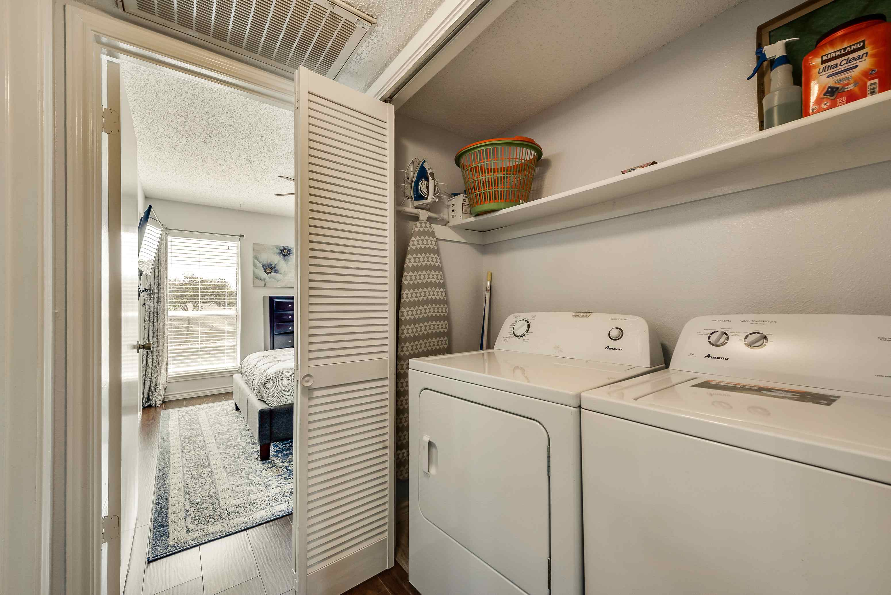 - Alarm system Dining and cooking utensils provided Full size Washer & Dryer Swimming pool guest access Popular restaurants and shopping are closeby. Downtown Dallas Nearby highways Modern layout Guests have access to a community pool, and a reserved parking spot.