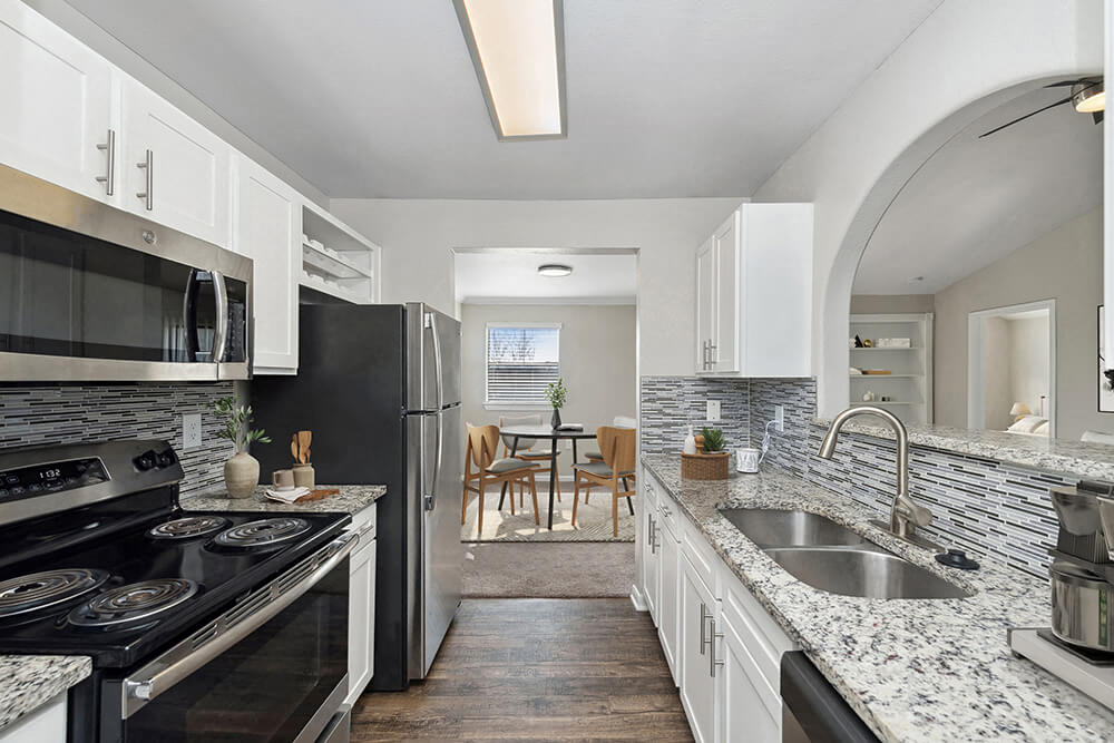 At Hidden Creek Apartments, interior details shape your lifestyle. The features of our charming apartments stand out in the crowd. Well-lit living spaces and modern amenities are apparent from the moment you step through the door of any of our one, two, and three-bedroom apartments in Lewisville, TX. Browse the floor plans below and do not hesitate to give us a call to secure your place in our inviting pet-friendly community. Select One of Our Lewisville Apartments You will love calling any of our one, two, and three-bedroom layouts home. Ranging between 608 and 1,277 square feet, each layout has been thoughtfully designed to provide you with an outstanding living experience. You’ll feel the comforts of home with the wood flooring, walk-in closets, and stainless steel appliances that each of our one, two, and three-bedroom Lewisville apartments feature. The thought and care that we put into these pet-friendly one and two-bedroom apartments in Lewisville, TX are also visible in the community amenities. Our residents can host friends and family or enjoy some alone time with exclusive access to a basketball court, dog park, and fitness center. Discover everything Hidden Creek Apartment's life has to offer by scheduling a tour or stopping by today. Our friendly leasing team is waiting to help you find the perfect home.