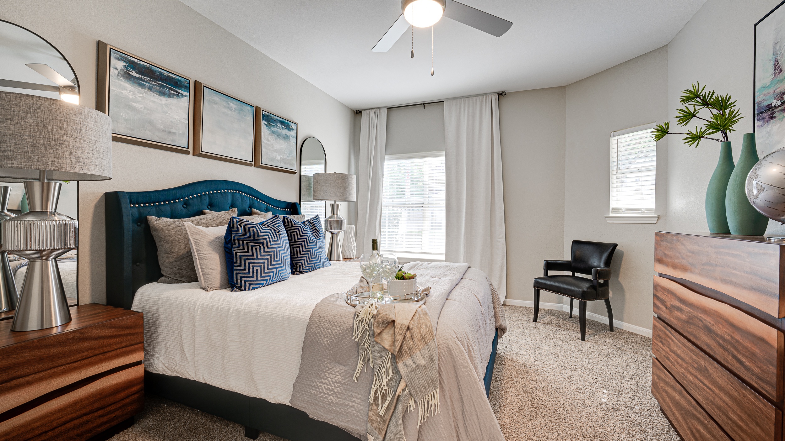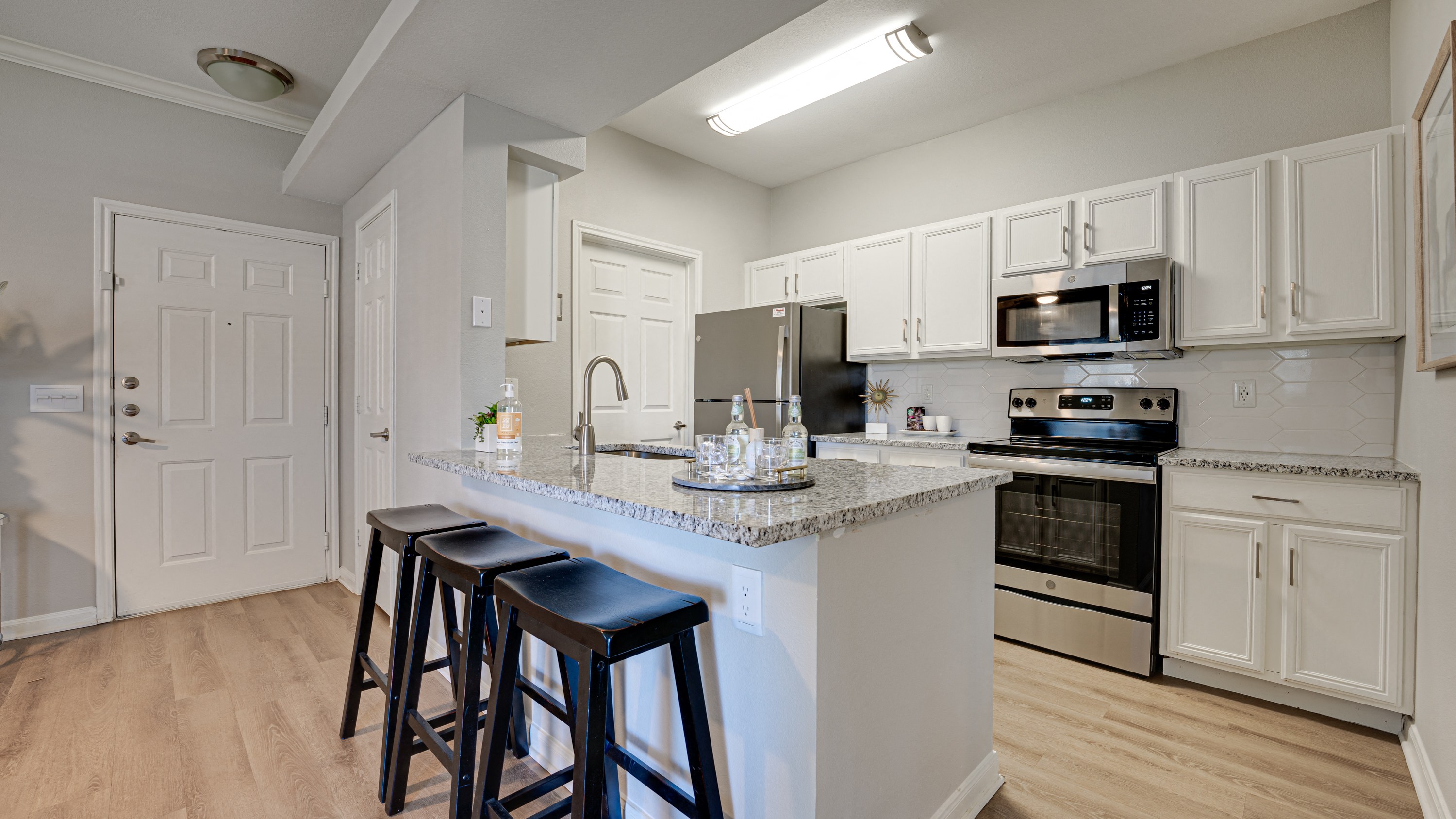 Limestone Ranch Apartments takes your lifestyle to new heights. Part of a beautifully landscaped community with delightful canal views, these one and two-bedroom apartments in Lewisville, TX, give you an unexpectedly serene environment across the street from The Vista. Explore them, along with the short-term leasing options, up-to-date amenities, and zero-deposit waiver. Seize A New Star in Our Modern Lewisville, TX Apartments Ranging from 625 to 1,175 square feet, our luxury apartments for rent in Lewisville, TX, give you the space you need and the perks you want. Every bedroom comes with plush carpeting and a walk-in closet, while the living rooms are well-illuminated not only through large windows, but through access to a patio or balcony. Floor plans on ground level may even have an enclosed yard to give you more outdoor space. Thanks to the recent renovations, you can expect modern cabinets, with some of the kitchens boasting quartz countertops, tile backsplashes, and stainless-steel appliances. Also, some units have washer/dryer connections, while others come with a full set. All in all, you are bound to find something you and your furry companions will love. A community in the strongest sense of the word, Limestone Ranch gives you plenty of opportunities to create lasting bonds. Meet your neighbors at the Wi-Fi lounge, chitchat at the cabana, and have a brew at the complimentary Java bar. When you have friends over, bring them to the pool, grill a juicy BBQ at the picnic areas, or play a lawn game—all the “equipment” you need is right on site. Your life will be good in Lewisville, TX—our apartments make sure of that. Before applying, come by for a visit. We are close to the intersection of Sam Rayburn Tollway and I-35E, so whichever direction you come from, reaching us will be a breeze. Book a tour now.
