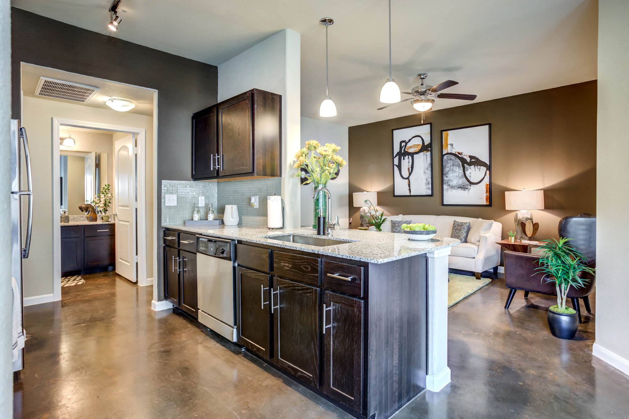 At Legacy Brooks Apartments, we strive to make your life extraordinary, every day. Our studio, one, two, and three-bedroom apartments in Highland Hills, San Antonio, offer up to 1,282 square feet of space and ensure all the necessities of a modern home. The community amenities provide an escape from the daily hustle and give you the chance to socialize. As for the location, it puts the best of southeast San Antonio within minutes of the front door—shop, restaurants, schools, businesses, parks, everything you need is right here. Upscale Apartments for Rent in Highland Hills, San Antonio Step inside our homes and enjoy the much-needed peace and quiet. Each of these apartments in Highland Hills, TX, features high ceilings for extra space, granite countertops for a solid cooking experience, and wood-style floors for that extra touch of elegance. Enjoy carefree laundry days with an in-unit washer & dryer set or get ready for a new day in beautiful bathrooms with oversized garden tubs. Enjoy cooking, dining, and sleeping in a comfy place and take advantage of the private patio or balcony to bring nature closer to home. Corporate suites are also available! Spending time at home will feel truly rewarding. For the beginning, you can either sunbathe at the swimming pool or share beautiful moments with your neighbors in the common areas. Feel free to bring your four-legged friend to the dog park or, even better, take them on a short stroll to nearby Pickwell Park. You’ll also find a playground there, but it’s safe to say that the little residents might prefer the one in our community more. If all this piqued your interest, give us a call! Our team is excited to tell you more about these upscale apartments for rent in San Antonio, TX, 78223.