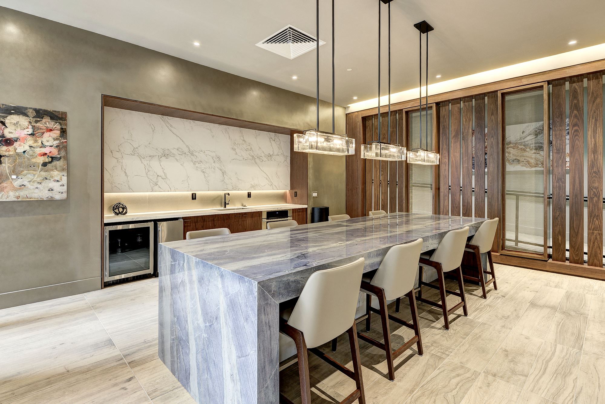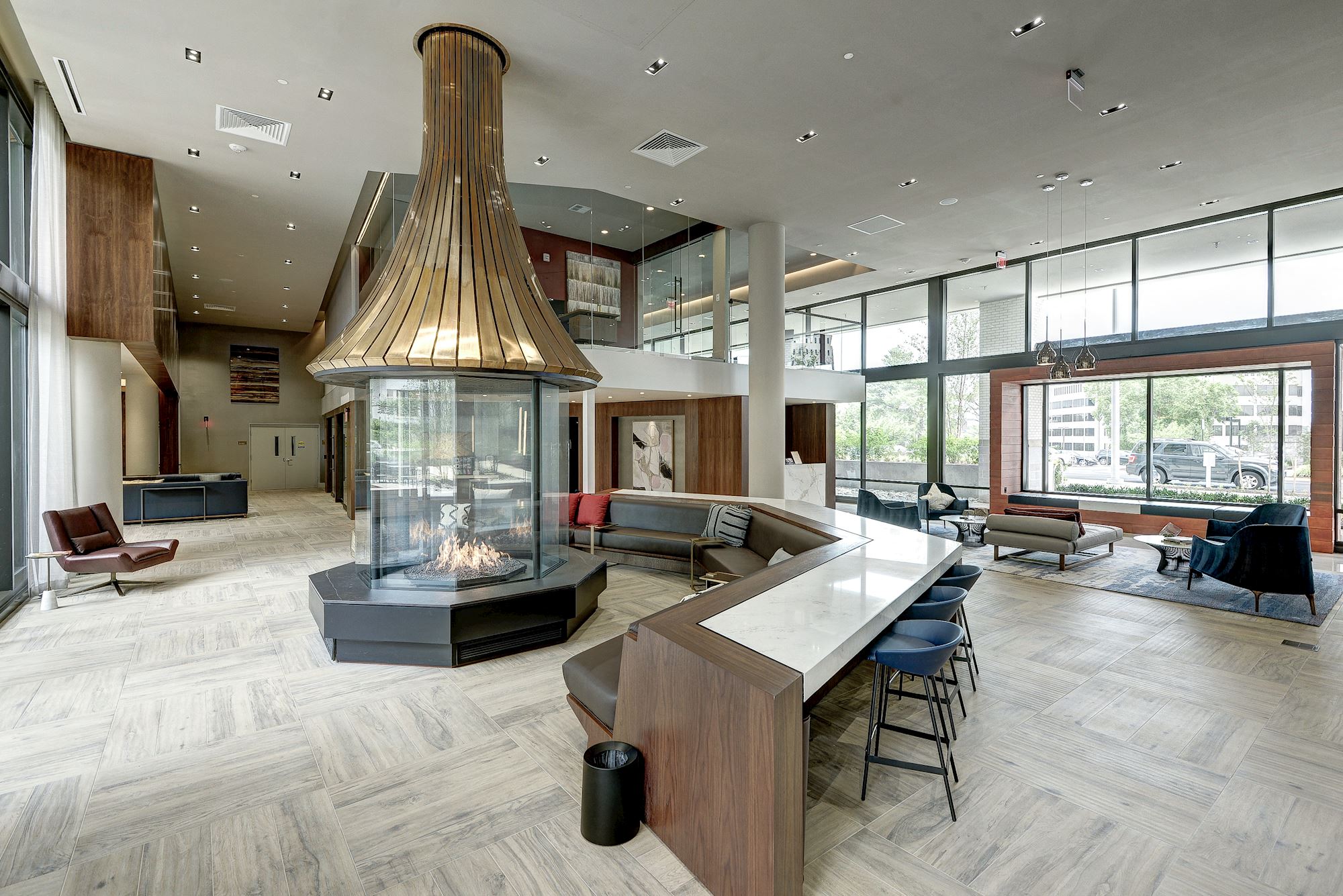 Our six-story building offers thoughtfully designed floorplans to fit the entire household. Our studio, one, and two-bedroom apartments come in various shapes and sizes and are embellished with the latest amenities. These include energy-efficient kitchen appliances, W/Ds, dishwashers, built-in cabinets, large closets, and electronic thermostats. Outside the front door, you encounter many recreational spaces that make you feel like you're on vacation, like a sparkling swimming pool, a screening room with a game area, a 24-hour modern fitness center, an outdoor dining space, and a Bluestone wine bar.