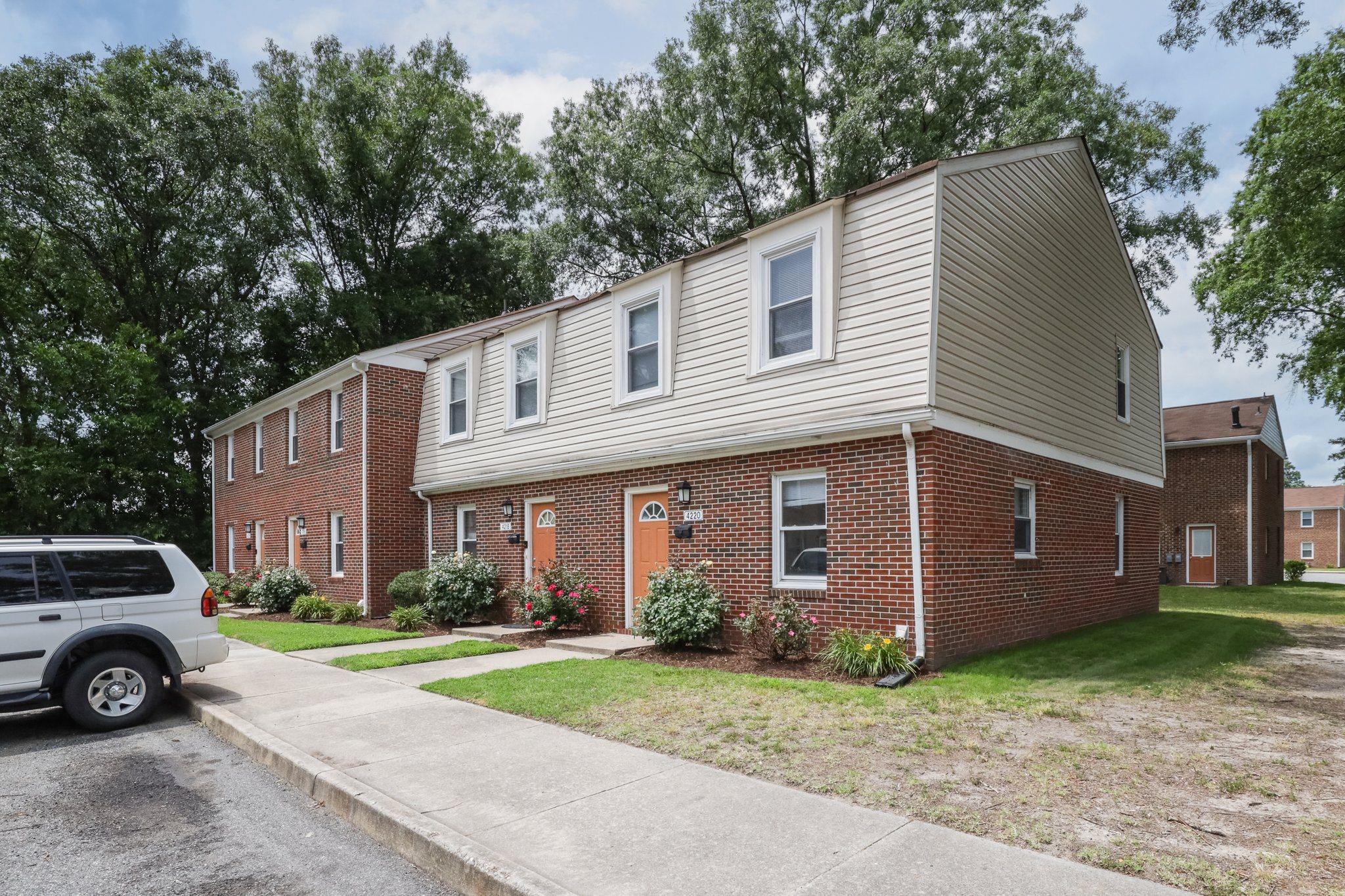 - Three bedroom townhouses feature one full bath and two half-baths
