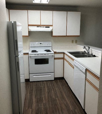 Spacious, updated two bedroom, one bathroom upper level unit located near Westview Elementary School and Cascade Mall. Freshly painted with all new luxury vinyl plank flooring through out and carpet in the bedrooms! Features updated kitchen appliances including dishwasher, stove, fridge, garbage disposal and W/D. Rent includes Water/Sewer/Trash. One reserved unit parking space.