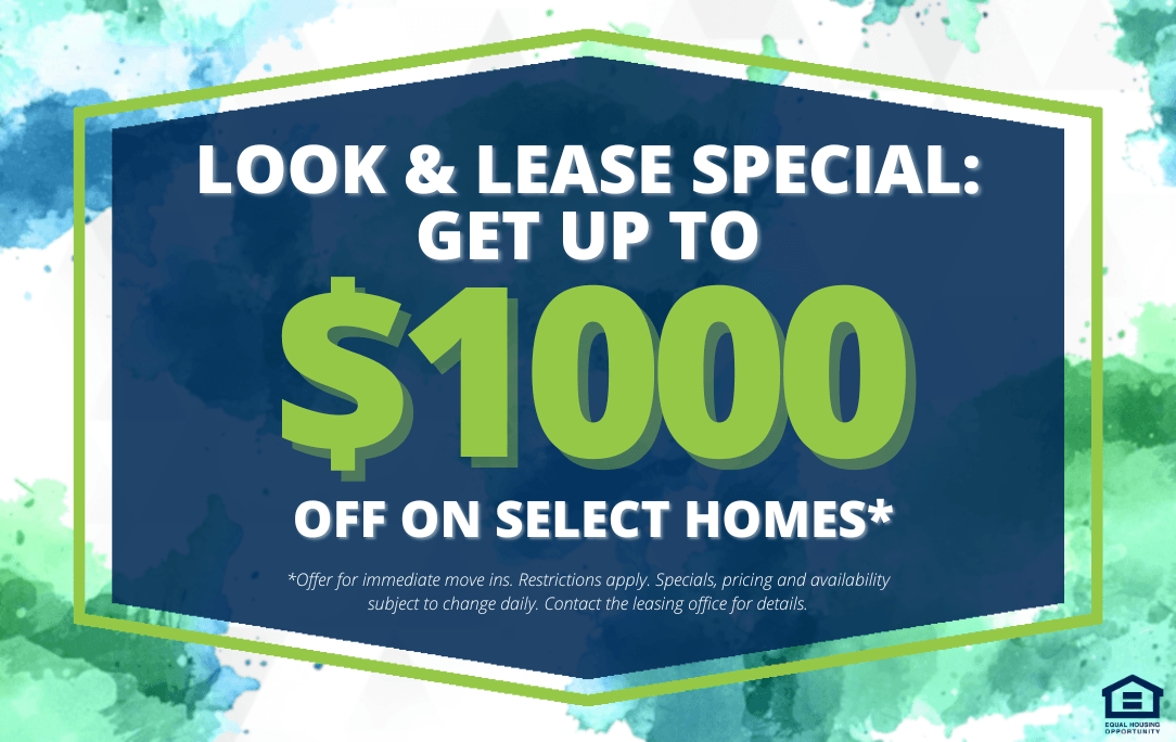 Up to $1000 off on select homes! *Offer for immediate move ins. Restrictions apply. Specials, pricing and availability subject to change daily. Contact the leasing office for details. Offers vary by floor plan.