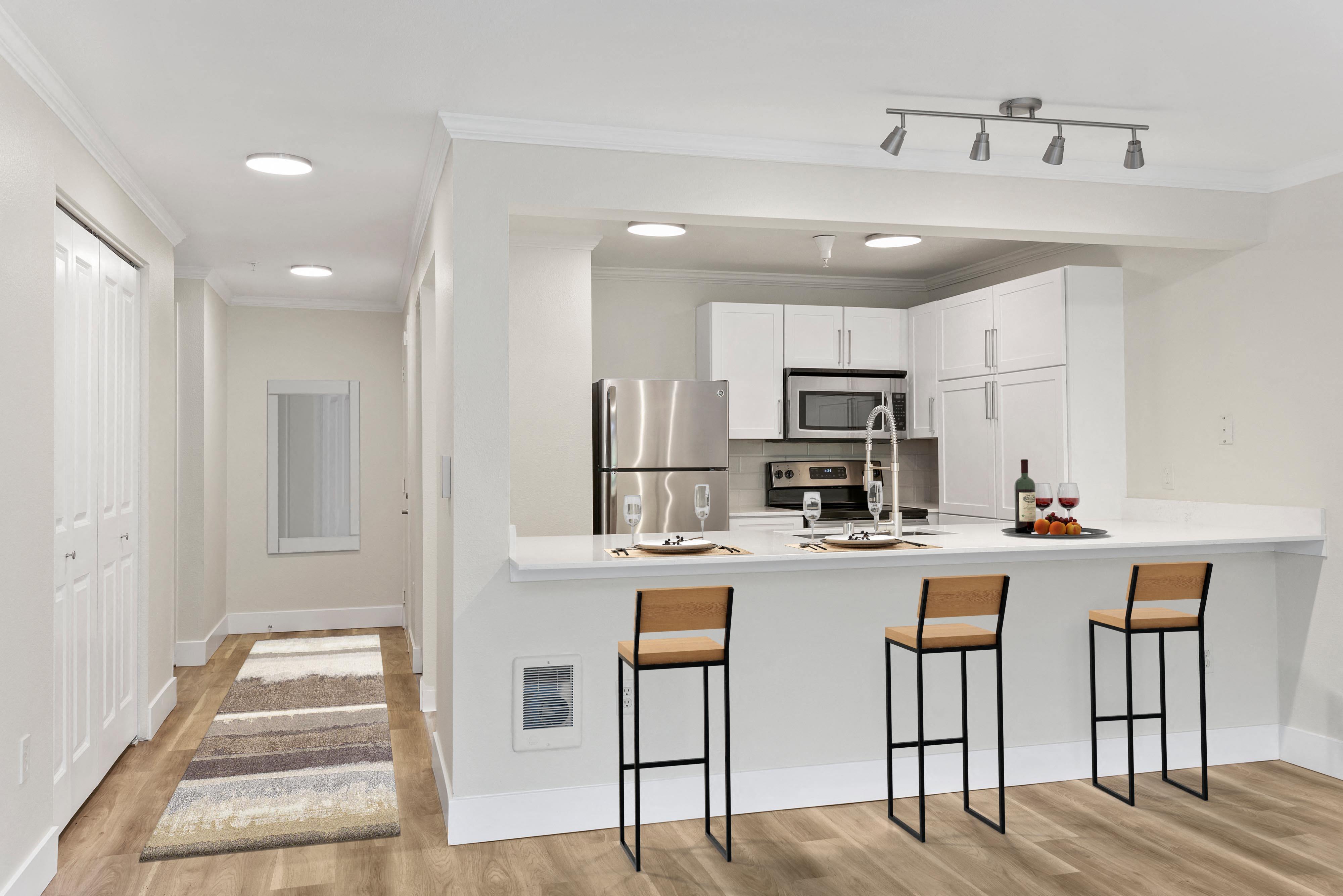 Surrounded by acres of trees and greenspaces, the stylish buildings at Lakemont Orchard contain a unique collection of floor plans. Our one, two, and three-bedroom apartments in Issaquah, WA were designed for modern living. Every home includes a full-size washer and dryer set, stainless steel appliances, and a private patio or balcony. Schedule a tour today.