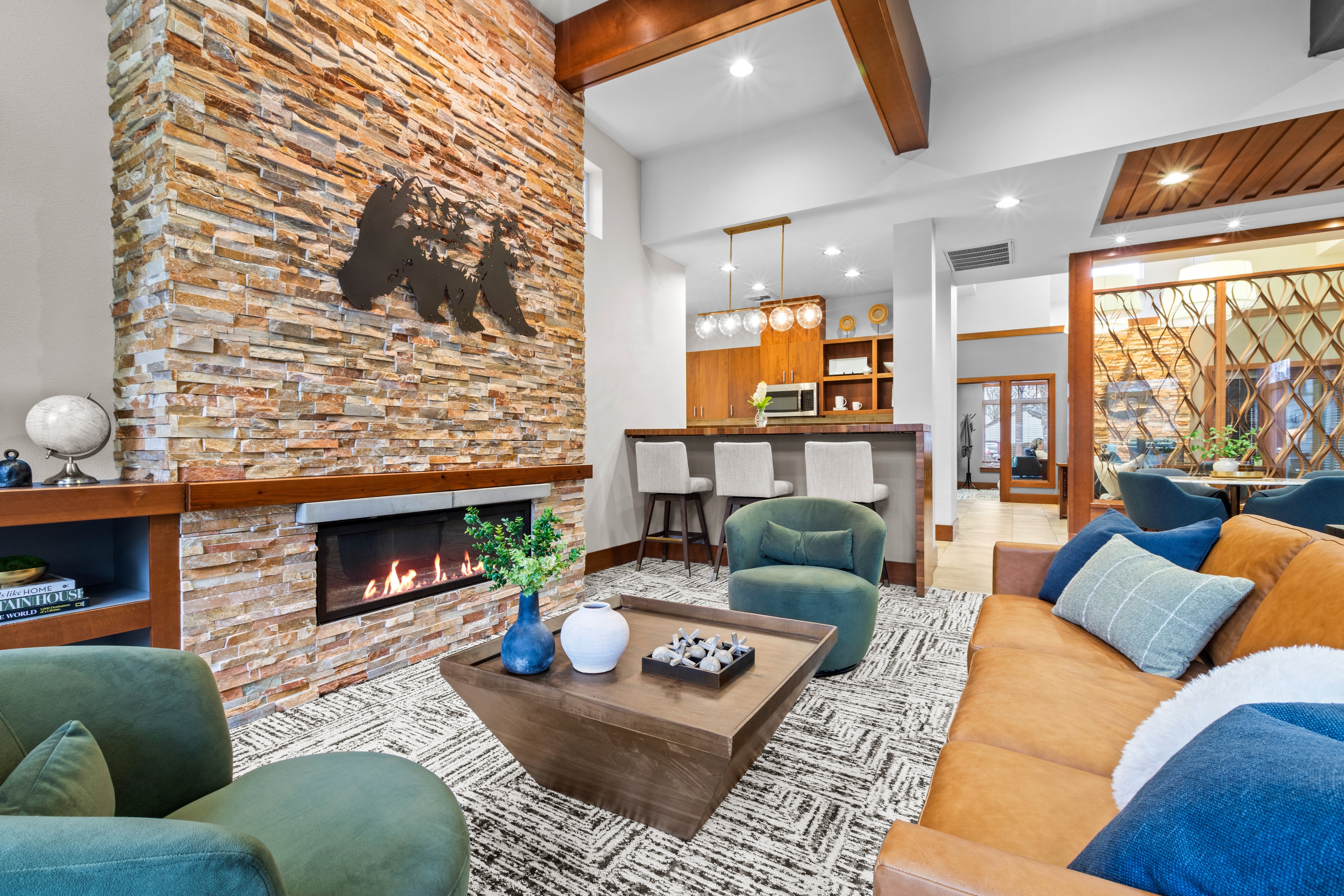 - Cozy Wood Burning Fireplace