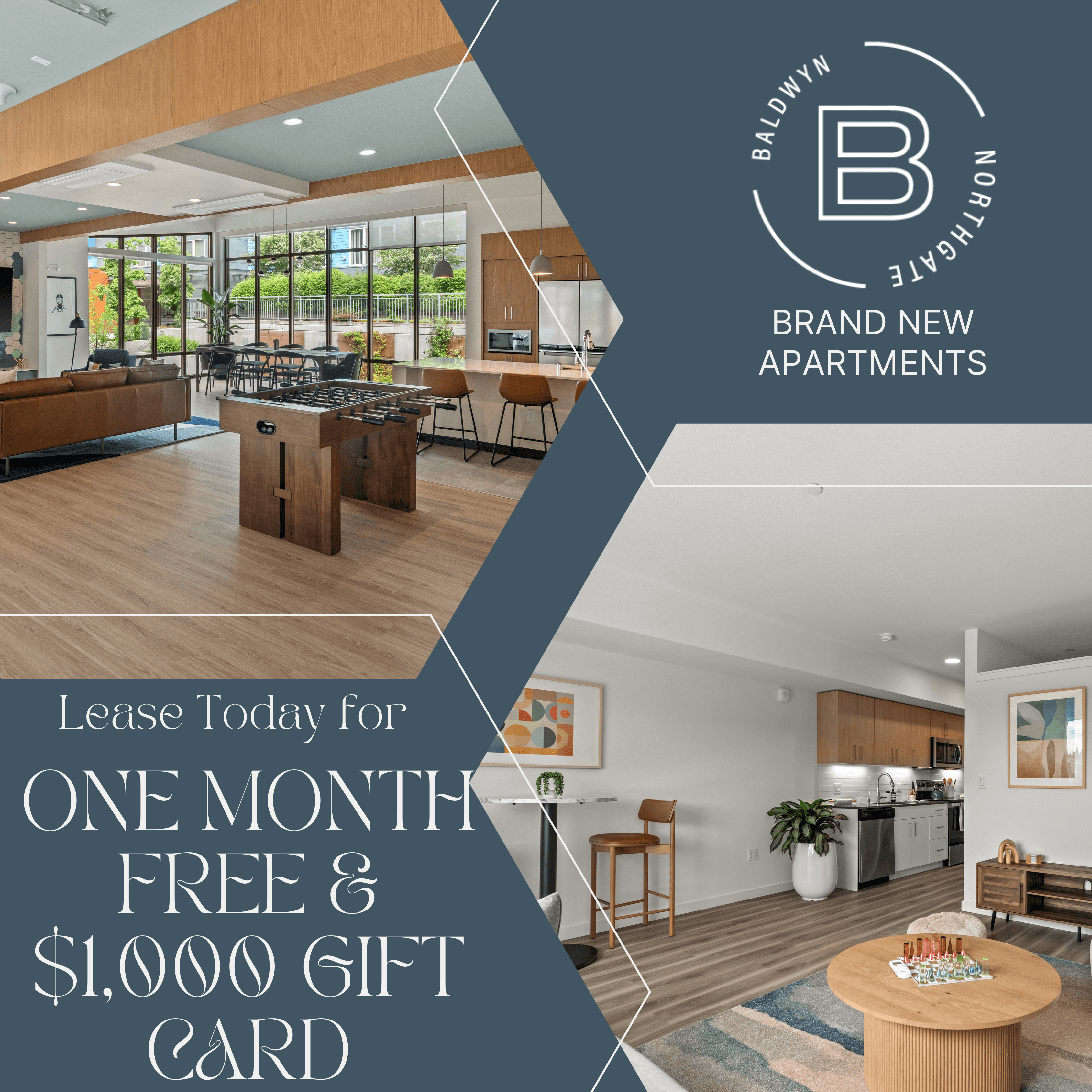 Located in the quaint Maple Leaf/ Northgate neighborhood of Seattle, WA, Baldwyn boasts a delightful selection of new studio, one, and two-bedroom apartments for rent to fit your lifestyle. Your comfort is our priority, so you’ll be sure to enjoy our open-concept floor plans designed to accommodate almost any family size. *In Select Homes MFTE (income qualified) Homes - At Baldwyn Apartments, we are proud participants in the City of Seattle's Multifamily Tax Exemption (MFTE) Program. This initiative is designed to help create affordable housing options within the city, and we are committed to doing our part. We invite you to browse through the floorplans below. Each one that is a part of this program has been clearly identified for your convenience. These specific homes are labeled with MFTE below and offer a unique opportunity to enjoy the comforts of living in a premier apartment community while benefiting from the affordability provided by the MFTE Program. Explore the floor plans now, and discover the perfect home that aligns with both your lifestyle and budget. You can also learn more about the City of Seattle's affordable program linked here. Availability and pricing are subject to change on a daily basis. Please contact us for current rates, specials, and availability. Begin Your New Chapter in Seattle's Northgate With several options to choose from, our apartment layouts start at 528 square feet and go all the way up to 1,119 square feet. No matter which one you select, rest assured it’ll be adorned with all the essential amenities you expect, including a whirlpool washer/dryer, modern kitchens, and quartz countertops. Top that off with an on-site management and maintenance team, and you can be confident that your needs will be met. Once you’re settled in, we invite you to start exploring our Northgate apartment community and all that it has to offer. Whether you like to stay active or just mingle with your neighbors, our pet-friendly apartments feature attractions to satisfy almost anyone, including a 24-hour fitness center, gated underground parking, and “The Public House” resident clubhouse. If you like to ice skate or are content with being a spectator, cross the street to the Kraken IcePlex. This ice rink is where the Seattle Kraken practice before their hockey games. Or if you need to get out for some retail therapy or quality entertainment, our location puts you in the middle of it all, with Northgate Station, Roosevelt Square, and Green Lake Park just a few short minutes away. Find your nest among our gorgeous homes in Seattle, Washington. Contact us to join the interest list today.