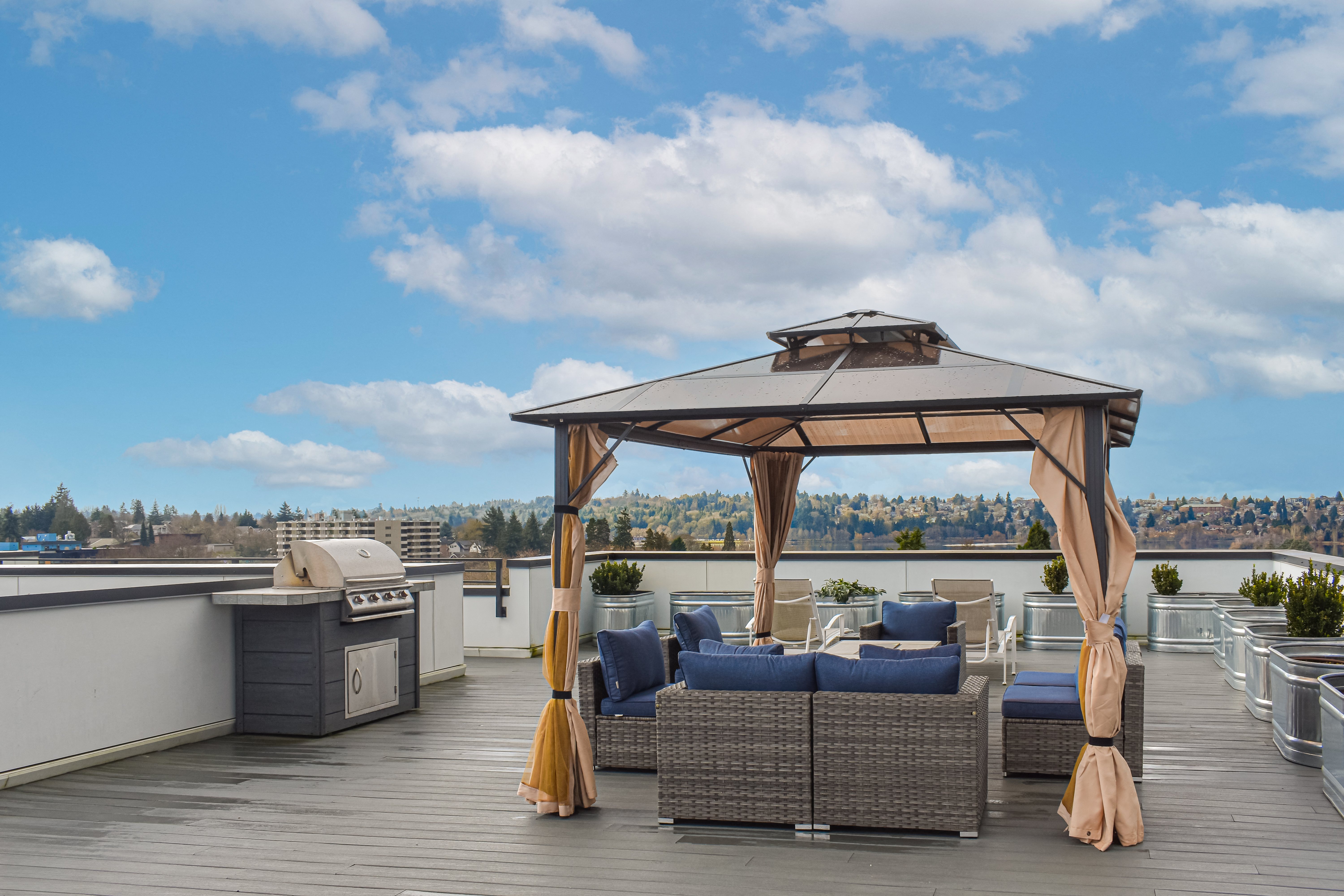 - Spacious rooftop deck with views of Green Lake (available to reserve)