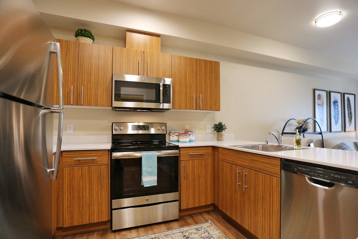- Modern, stainless steel appliances
