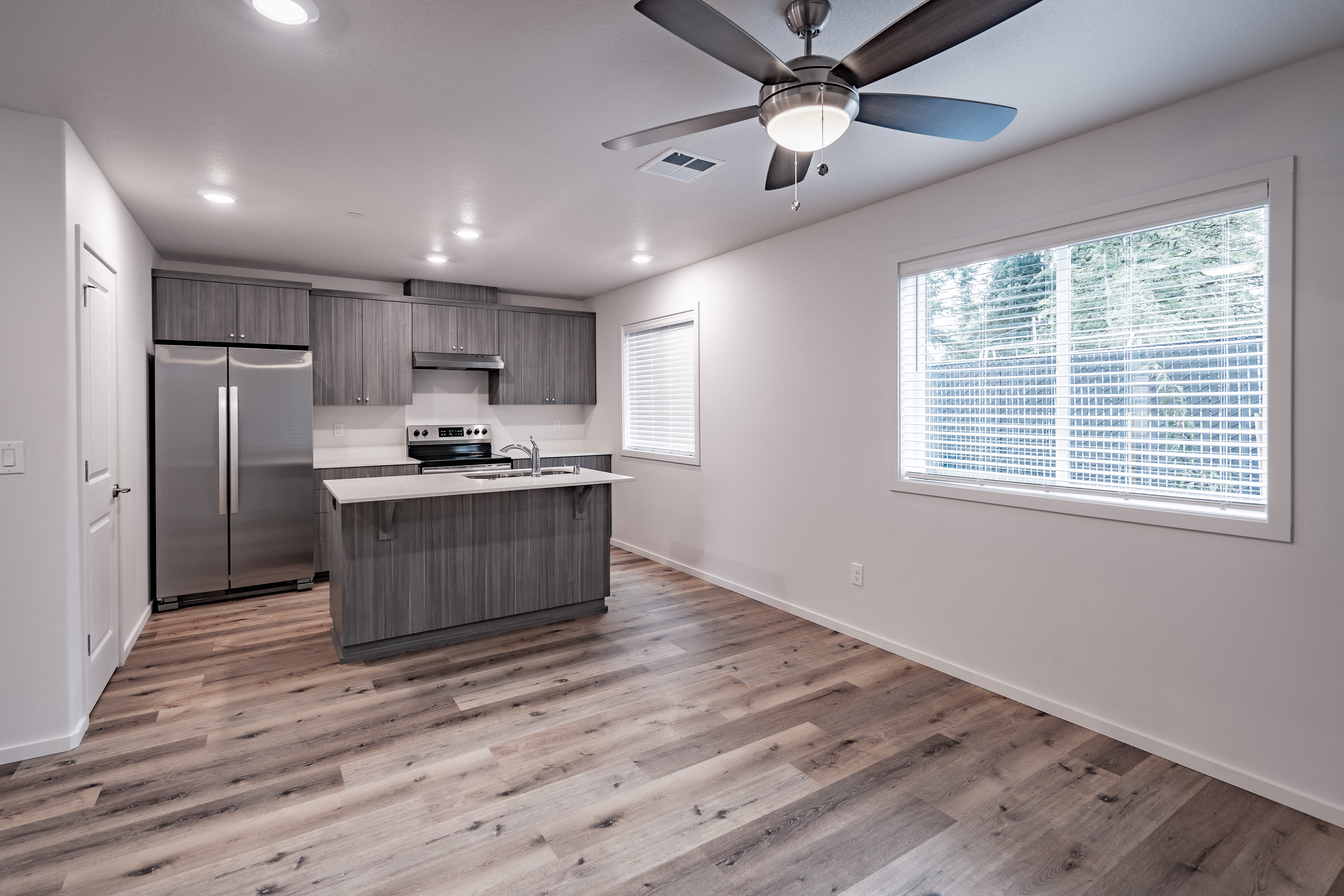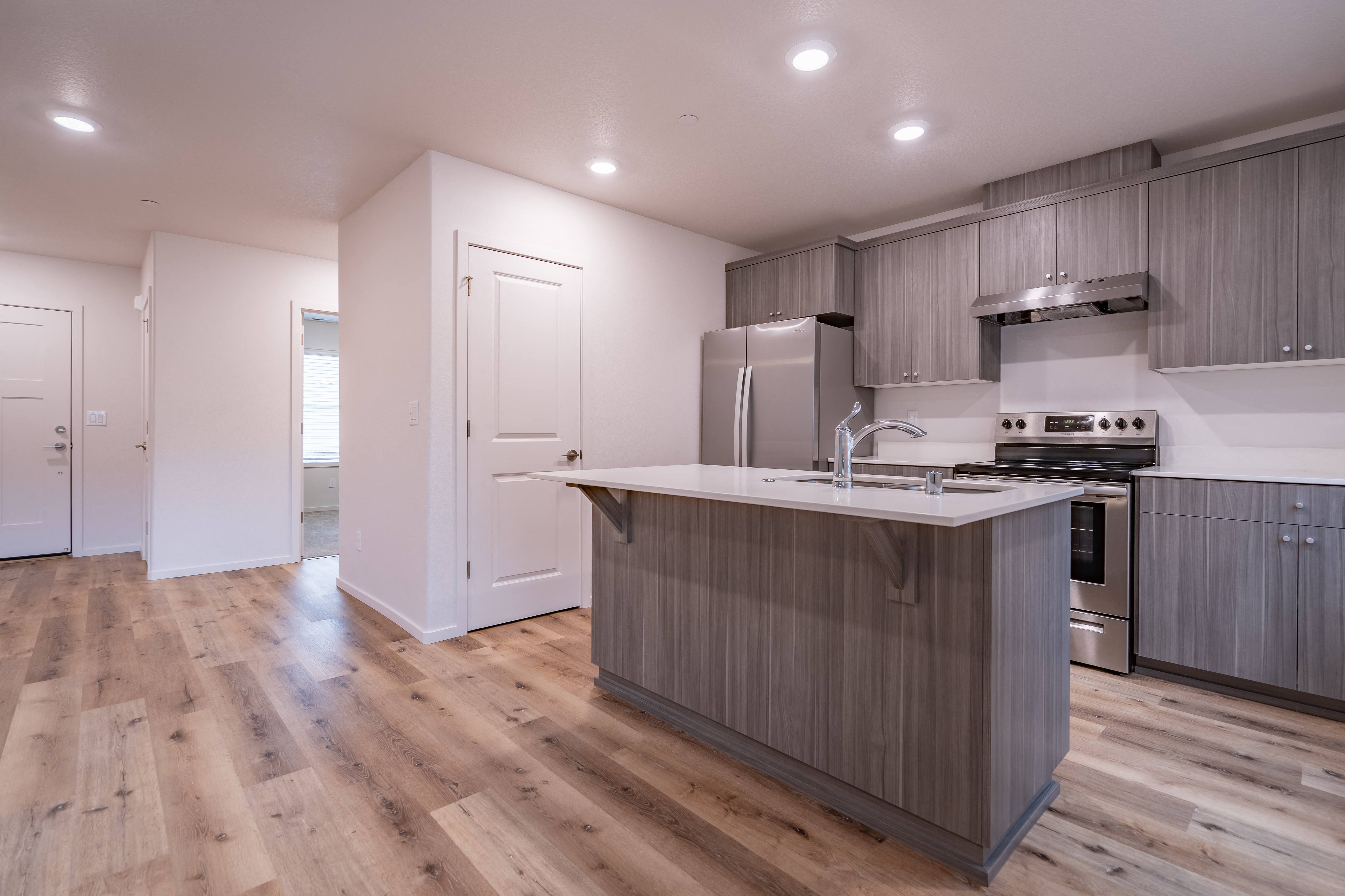 Our townhomes at Roosevelt Commons are built with quality and comfort in mind. The front entrance sets the tone for spacious open-floor living and leads you into the great room with an attached kitchen featuring slab counters, top-of-the-line cabinetry, and high-end stainless steel appliances. Spacious four bedrooms including an on-suite bath, a laundry room, and 3 full bathrooms are tucked away upstairs. These homes border the lush Burnt Bridge Creek Trail, a stunning 8-mile nature trail as well as several local parks within close proximity. Nearby highway access makes commuting a breeze, and there is a variety of shopping and restaurants in the area.