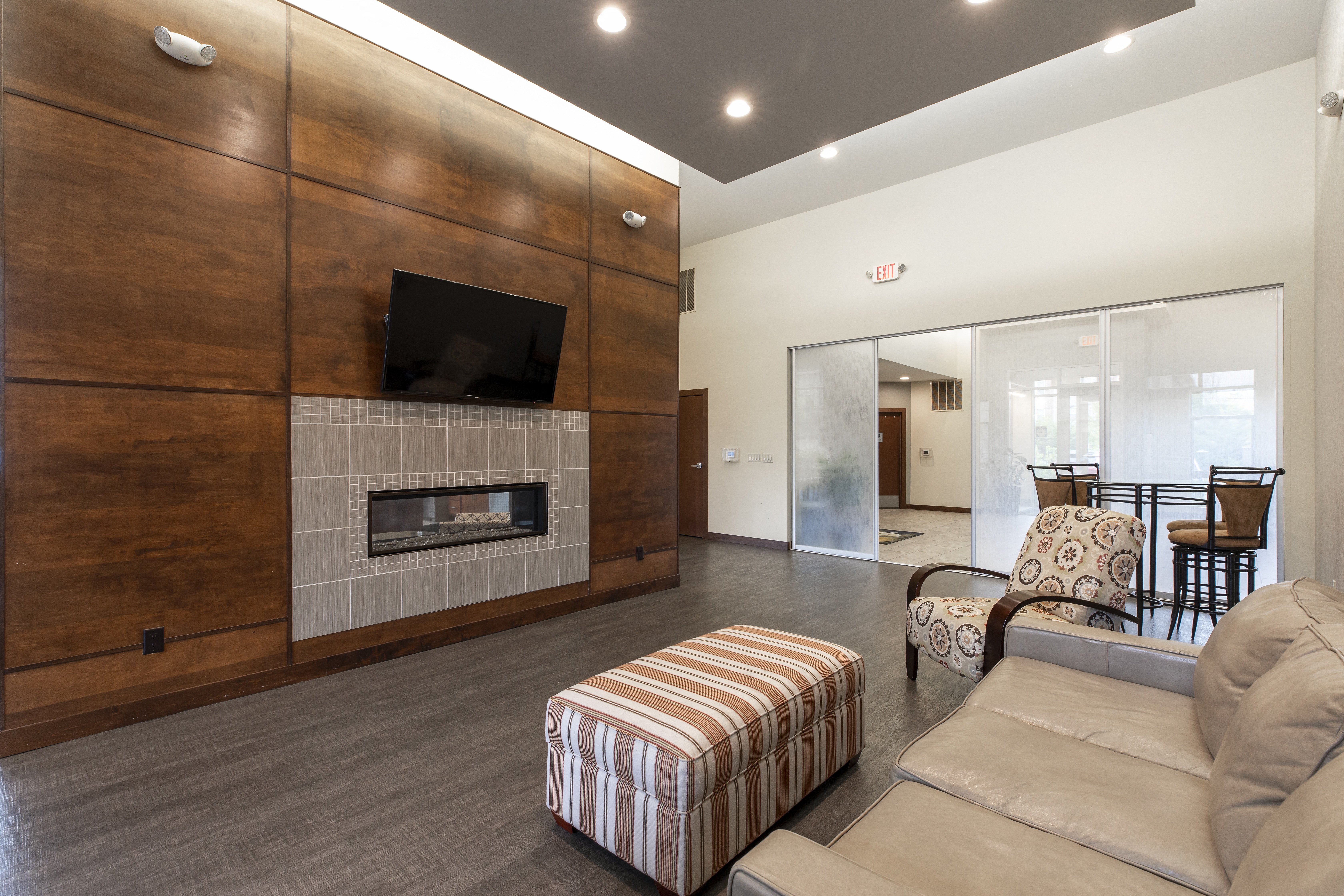 - Clubhouse gathering room with 2 large flat screen screen televisions