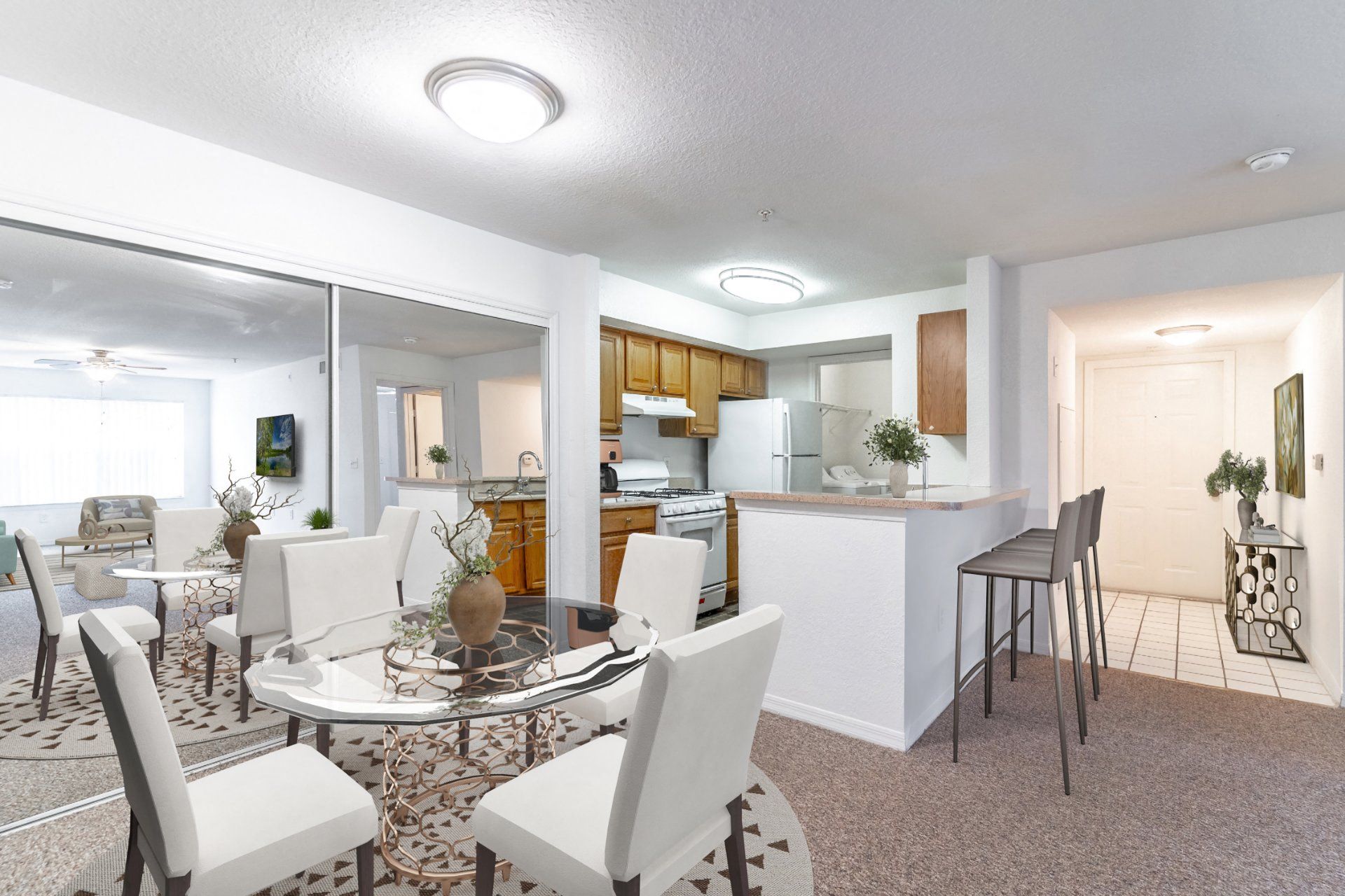 - Tile in Select Areas and Stain Resistant Berber-Style Carpeting